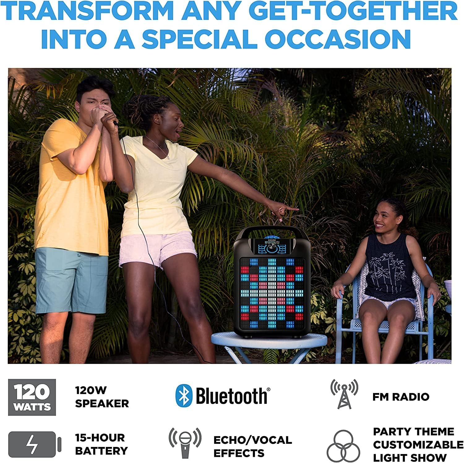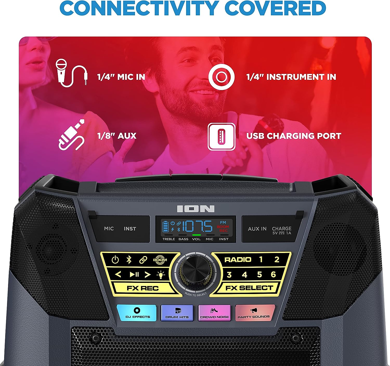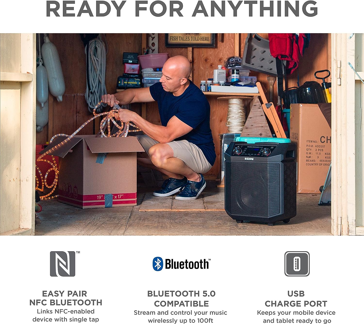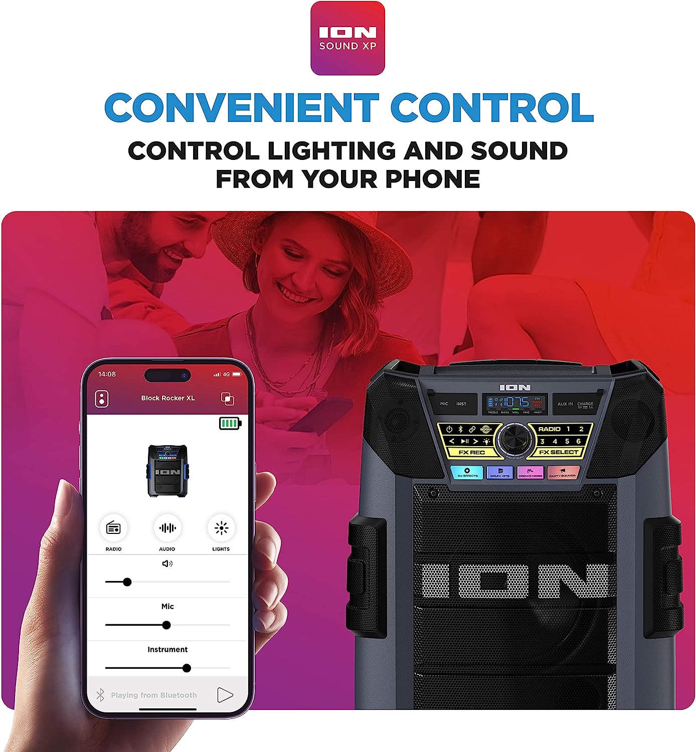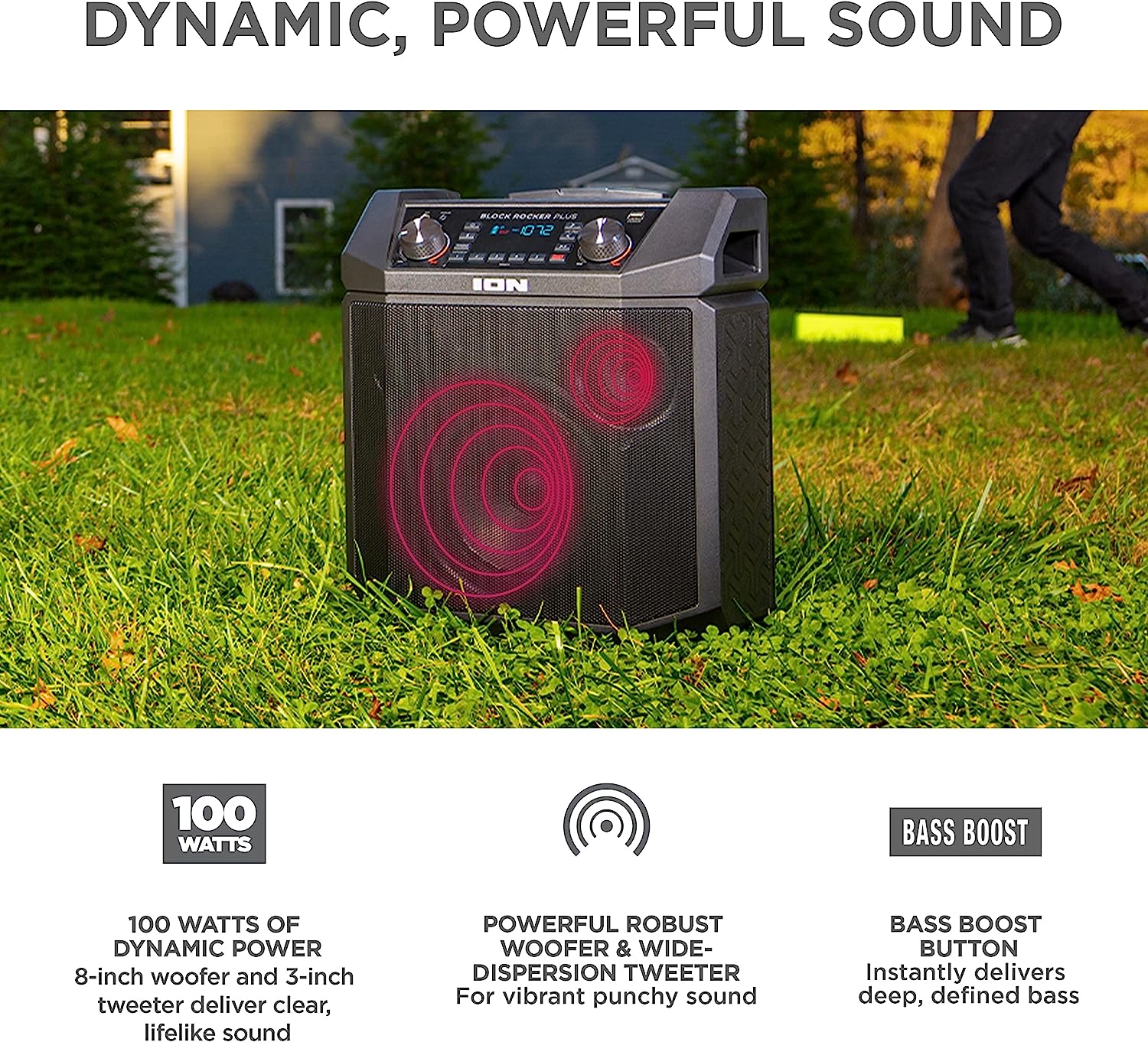 Your portable playback devices never sounded this good! Take total control of your playlist with Block Rocker Plus easy-pair wireless Bluetooth capability - keep your iPad, iPhone, or other Bluetooth music-playing device right by your side as you blast your music over Block Rocker Plus immense 100W peak power amplifier with bass boost. You can even control playback with dedicated Play/Pause, Next/ Previous Track Buttons. With a robust 8-inch woofer and wide-dispersion tweeter, experience deep driving bass and crystal-clear highs that guarantee to get your party moving! No Bluetooth? No Problem? Block Rocker Plus includes an on-board AM/FM radio with 20 pre-sets and even a 1/8-inch aux input, perfect for non-Bluetooth devices including CD players, cassette players and more.