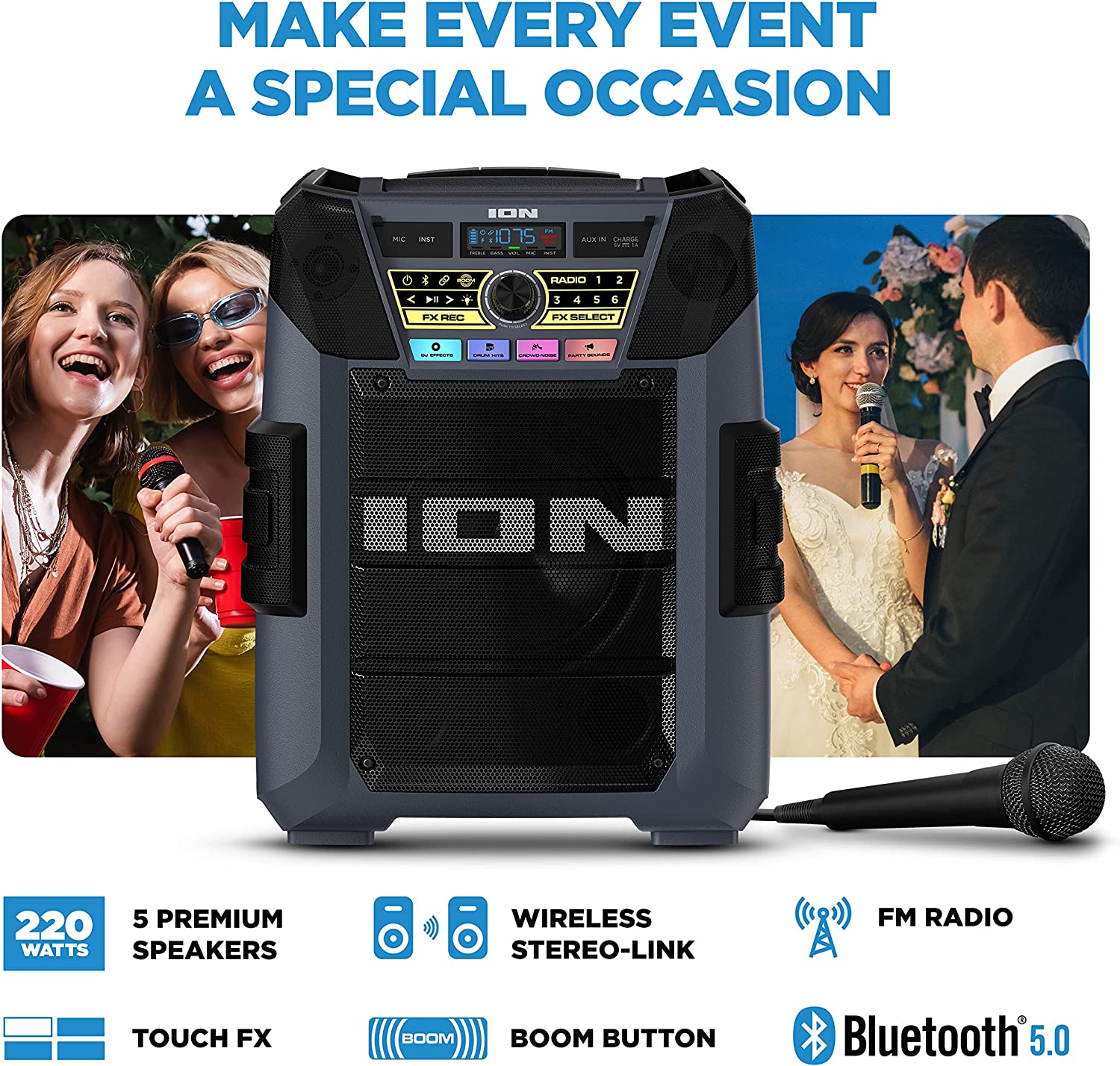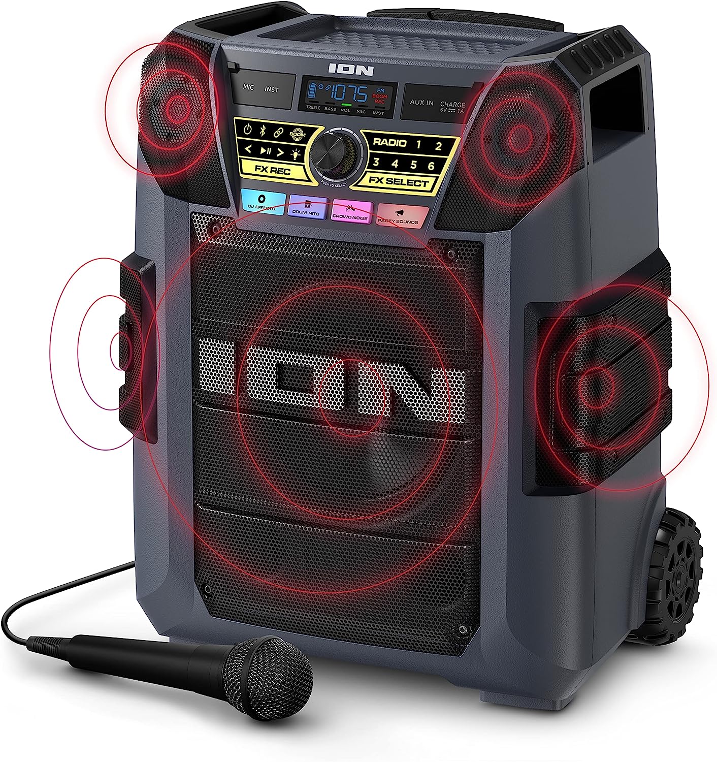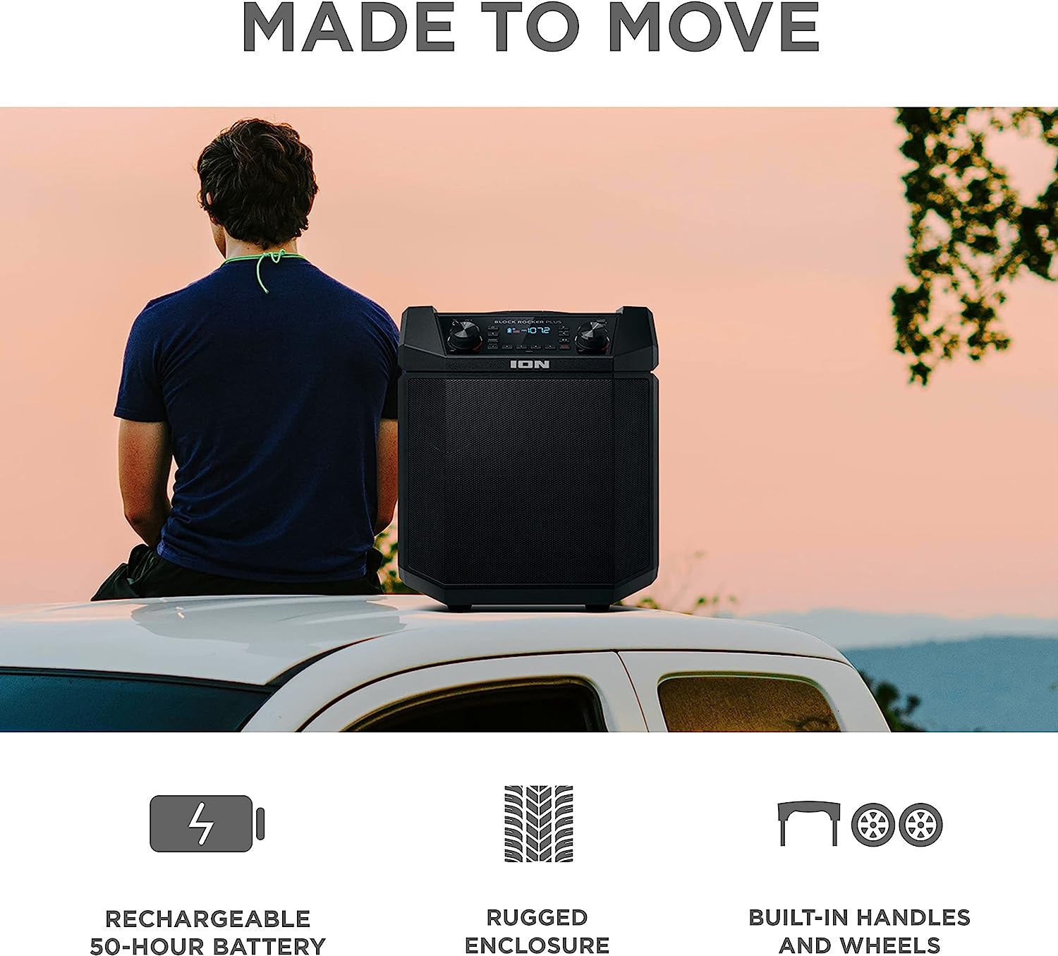 Don’t settle for an imitation, ION Audio’s legendary Block Rocker Series is the only choice when it comes to powerful lifelike sound on-the-go! Block Rocker Plus is an ultra-portable sound system including speakers, wheels, a telescoping handle, an amplifier, audio inputs, a microphone, an AM/FM radio and wireless easy-pair Bluetooth technology all packed in a road-ready cabinet that ready to go wherever and whenever you need superior sound reinforcement but lack AC power. The legendary Block Rocker returns – ready for whatever you throw at it!