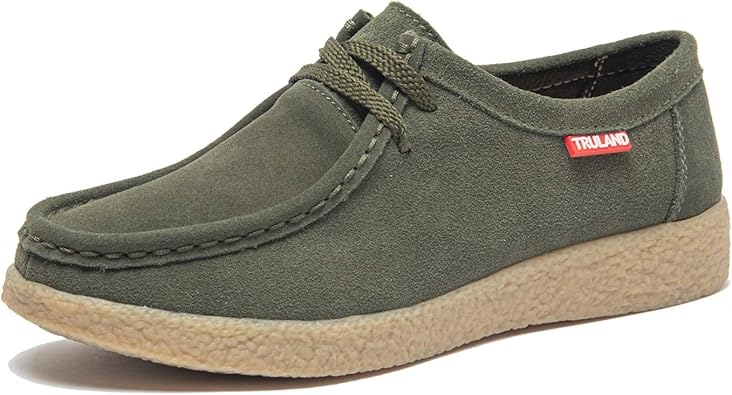 TRULAND Leather Oxford Shoes for Women - Suede Lace Up Moc Toe Low Platform Flat Wallabees Shoes