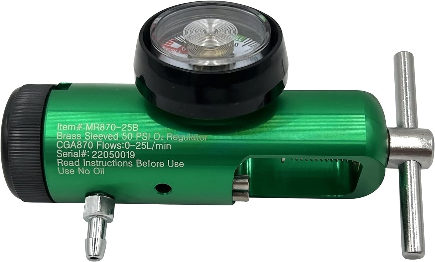 25 LPM Mini Oxygen Regulator, CGA-870 with Barb Outlet