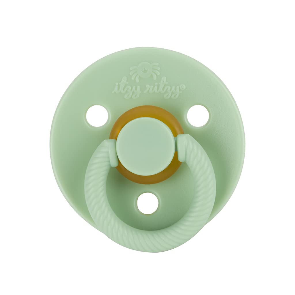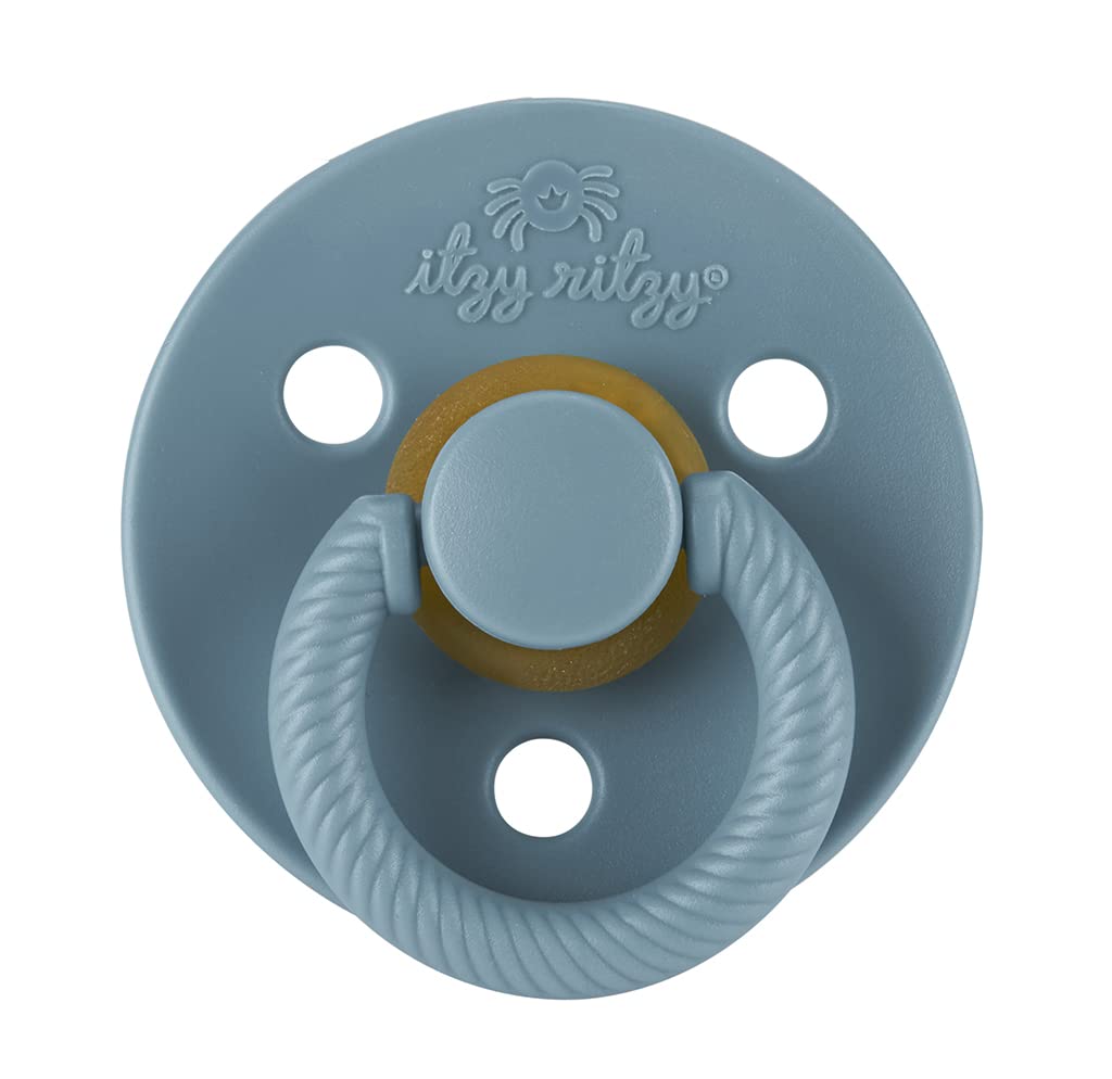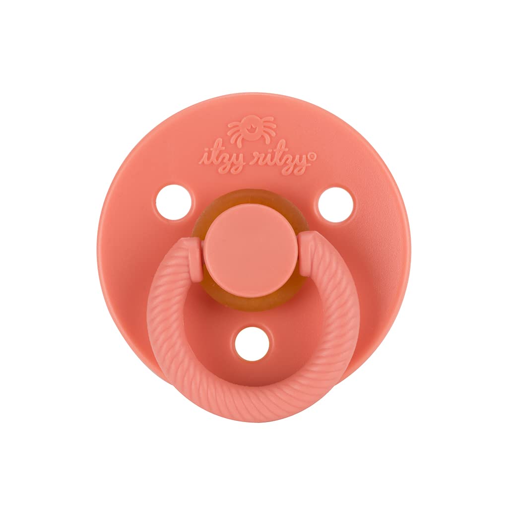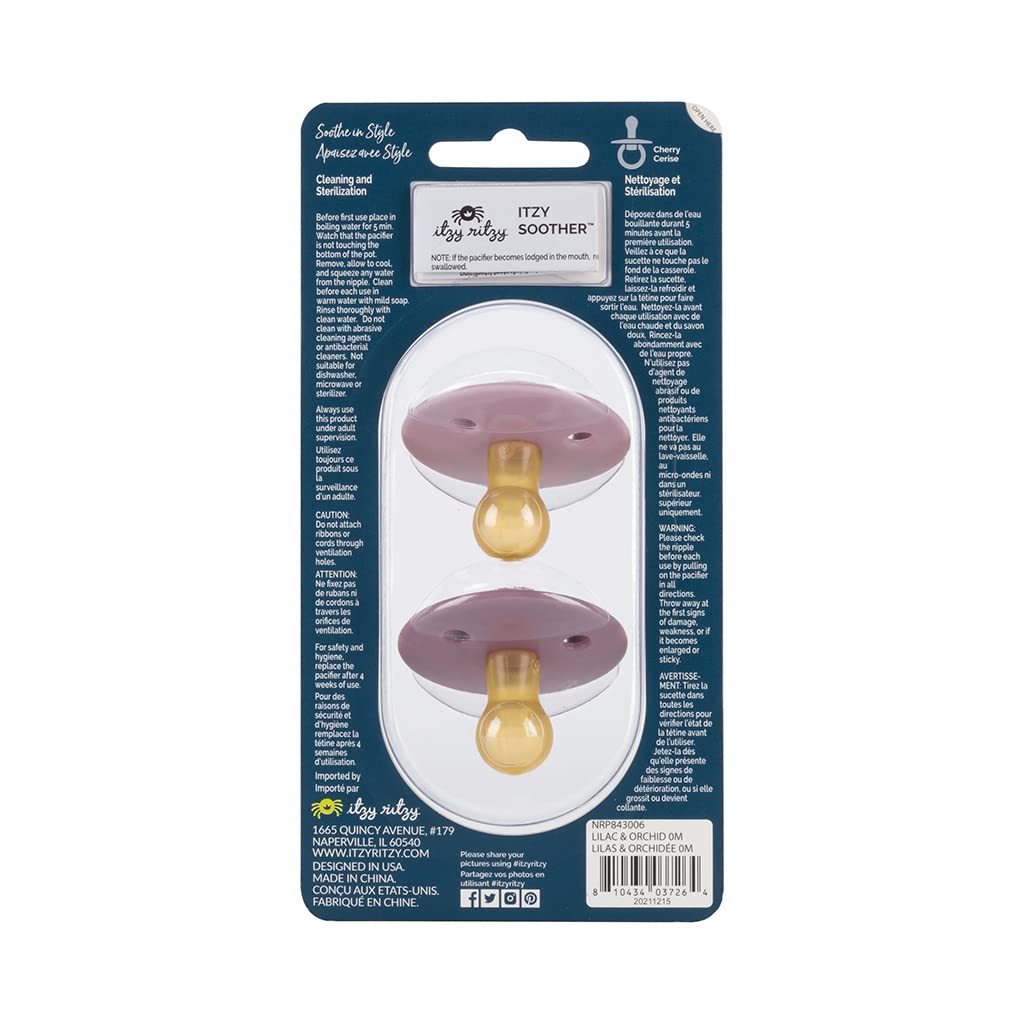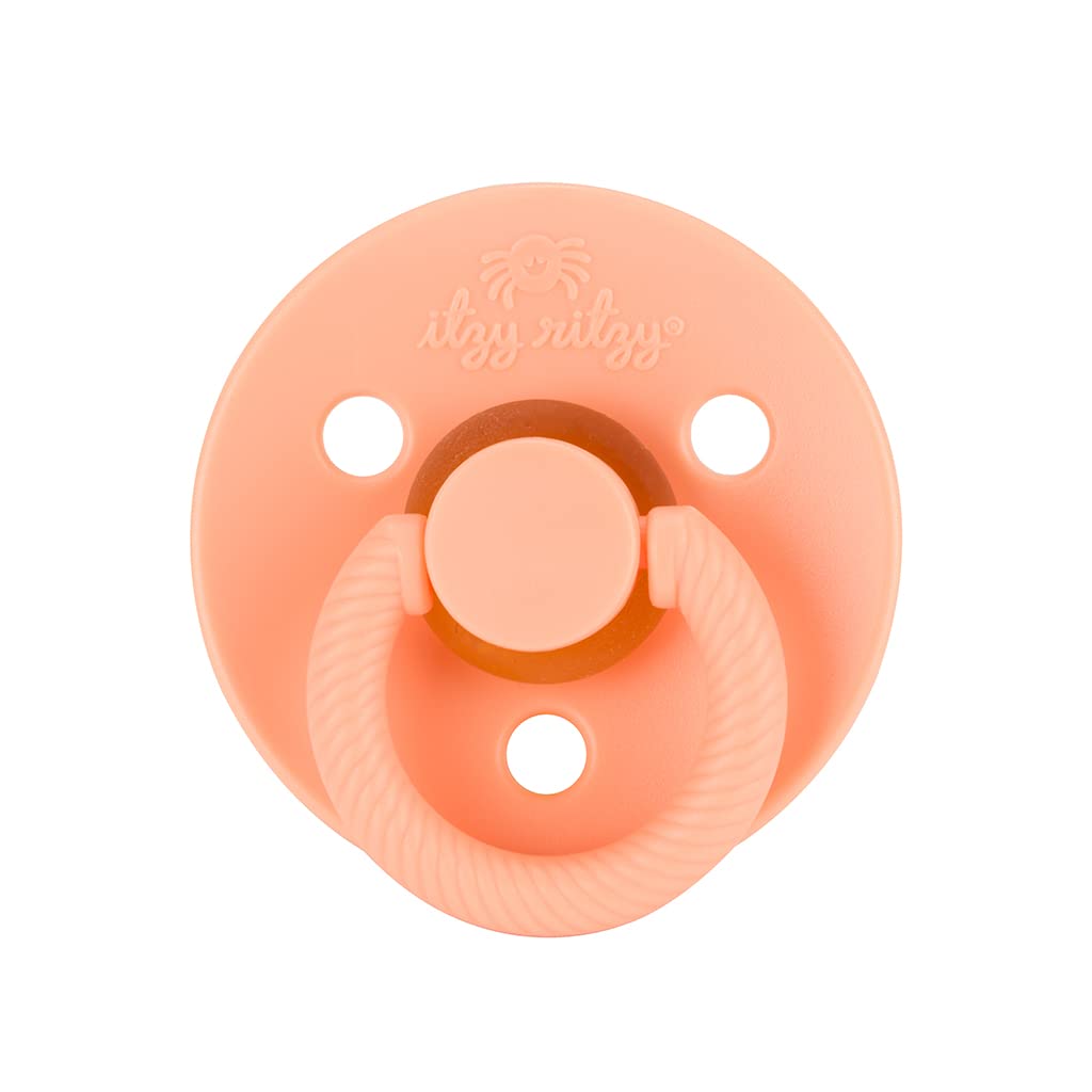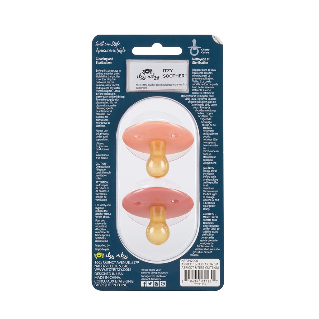 Help soothe your sweetie in style with these adorable rubber pacifiers from Itzy Ritzy! Their cherry-shaped natural rubber nipple is designed to mimic the feel of breastfeeding, and each pacifier features a cable accent on the security handle to coordinate with baby’s outfits. Our pacifiers meet ASTM safety standards and include large vent holes for breathability. If attaching a pacifier clip to a pacifier, we recommend security it around the handle and not through the air hole for safety. Available in a two-pack including one coconut and one toast, these pacifiers are ideal for babies from 0 – 6 months of age. Not suitable for dishwasher, microwave or sterilizer.