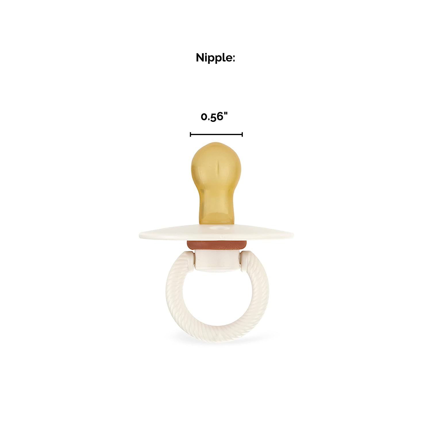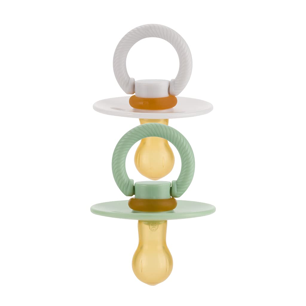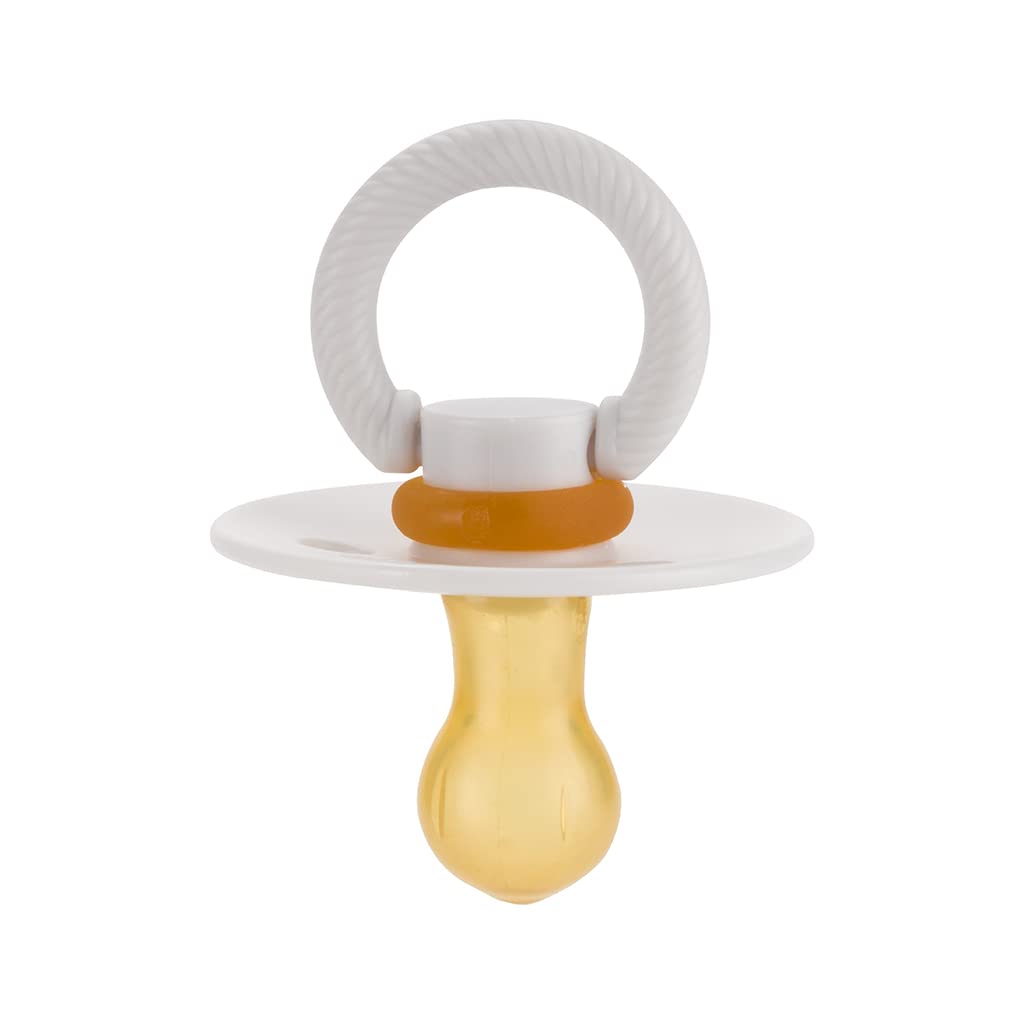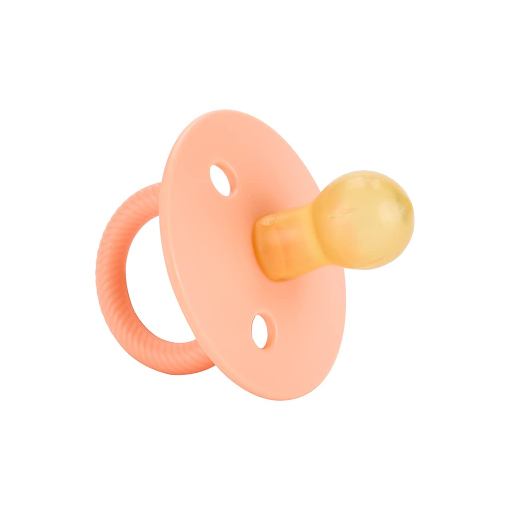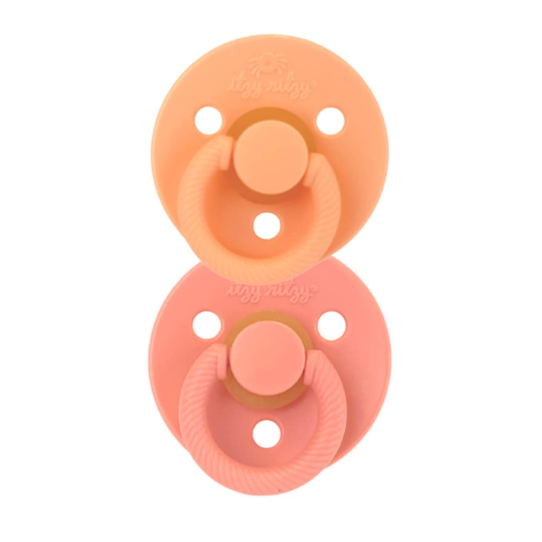 Help soothe your sweetie in style with these adorable rubber pacifiers from Itzy Ritzy! Their cherry-shaped natural rubber nipple is designed to mimic the feel of breastfeeding, and each pacifier features a cable accent on the security handle to coordinate with baby’s outfits. Our pacifiers meet ASTM safety standards and include large vent holes for breathability. If attaching a pacifier clip to a pacifier, we recommend security it around the handle and not through the air hole for safety. Available in a two-pack including one coconut and one toast, these pacifiers are ideal for babies from 0 – 6 months of age. Not suitable for dishwasher, microwave or sterilizer.
