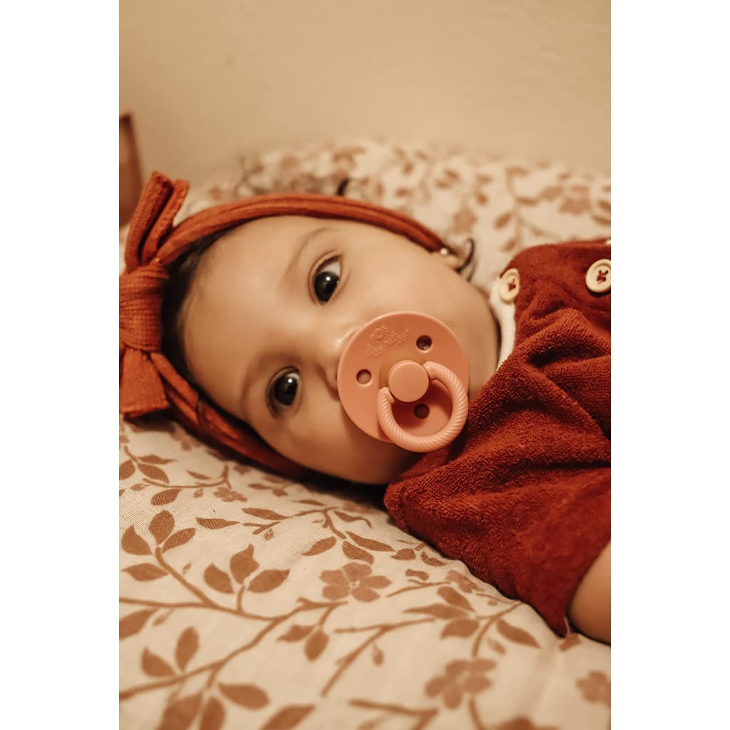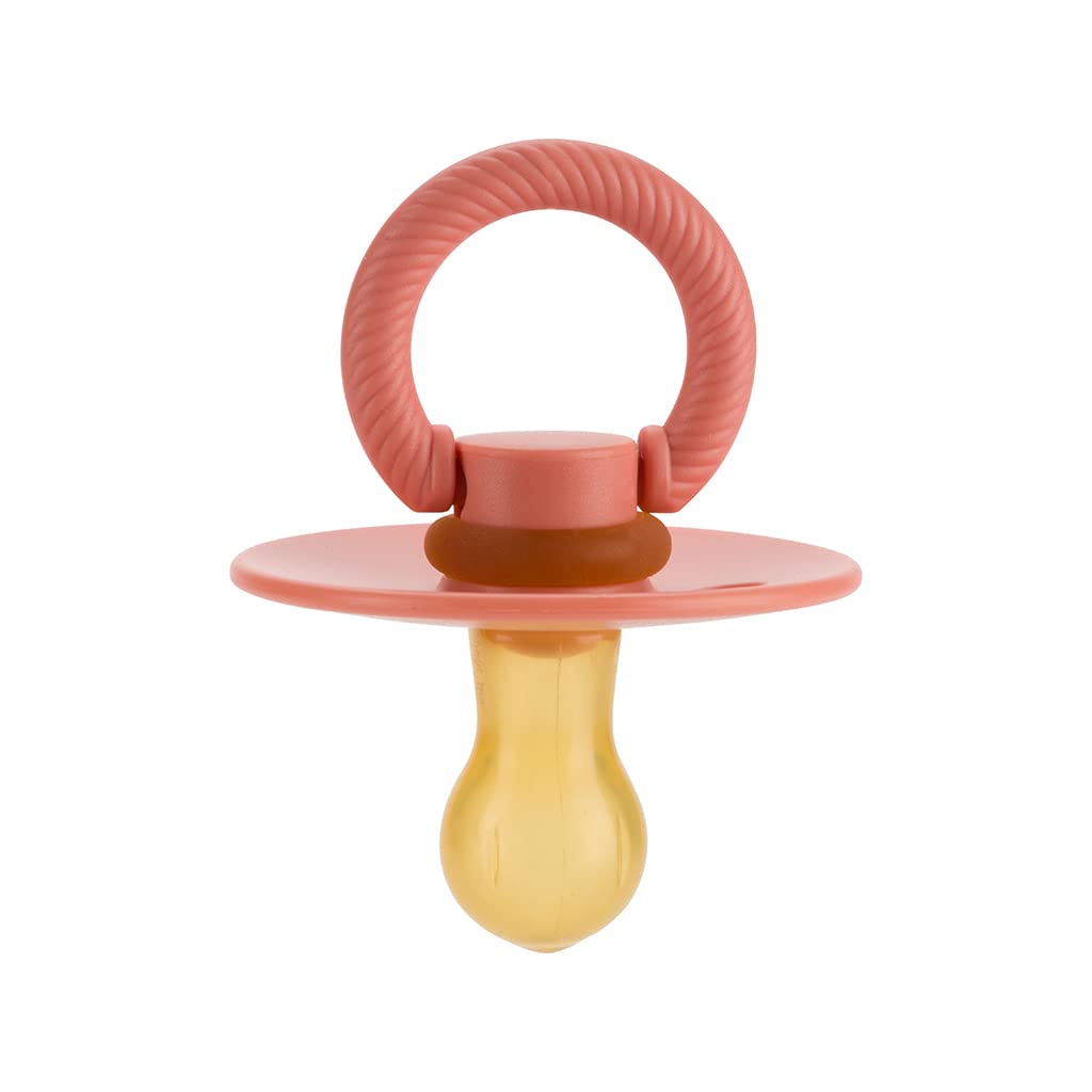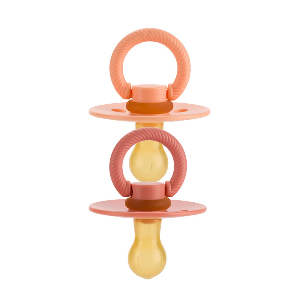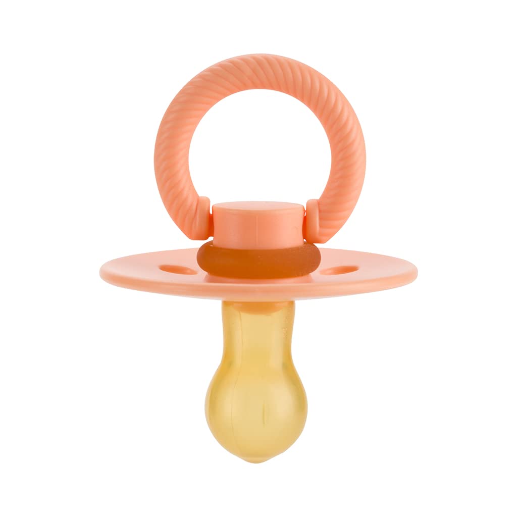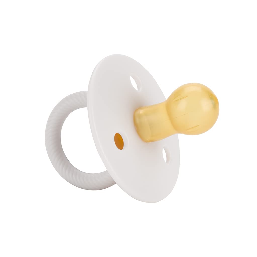 Help soothe your sweetie in style with these adorable rubber pacifiers from Itzy Ritzy! Their cherry-shaped natural rubber nipple is designed to mimic the feel of breastfeeding, and each pacifier features a cable accent on the security handle to coordinate with baby’s outfits. Our pacifiers meet ASTM safety standards and include large vent holes for breathability. If attaching a pacifier clip to a pacifier, we recommend security it around the handle and not through the air hole for safety. Available in a two-pack including one coconut and one toast, these pacifiers are ideal for babies from 0 – 6 months of age. Not suitable for dishwasher, microwave or sterilizer.