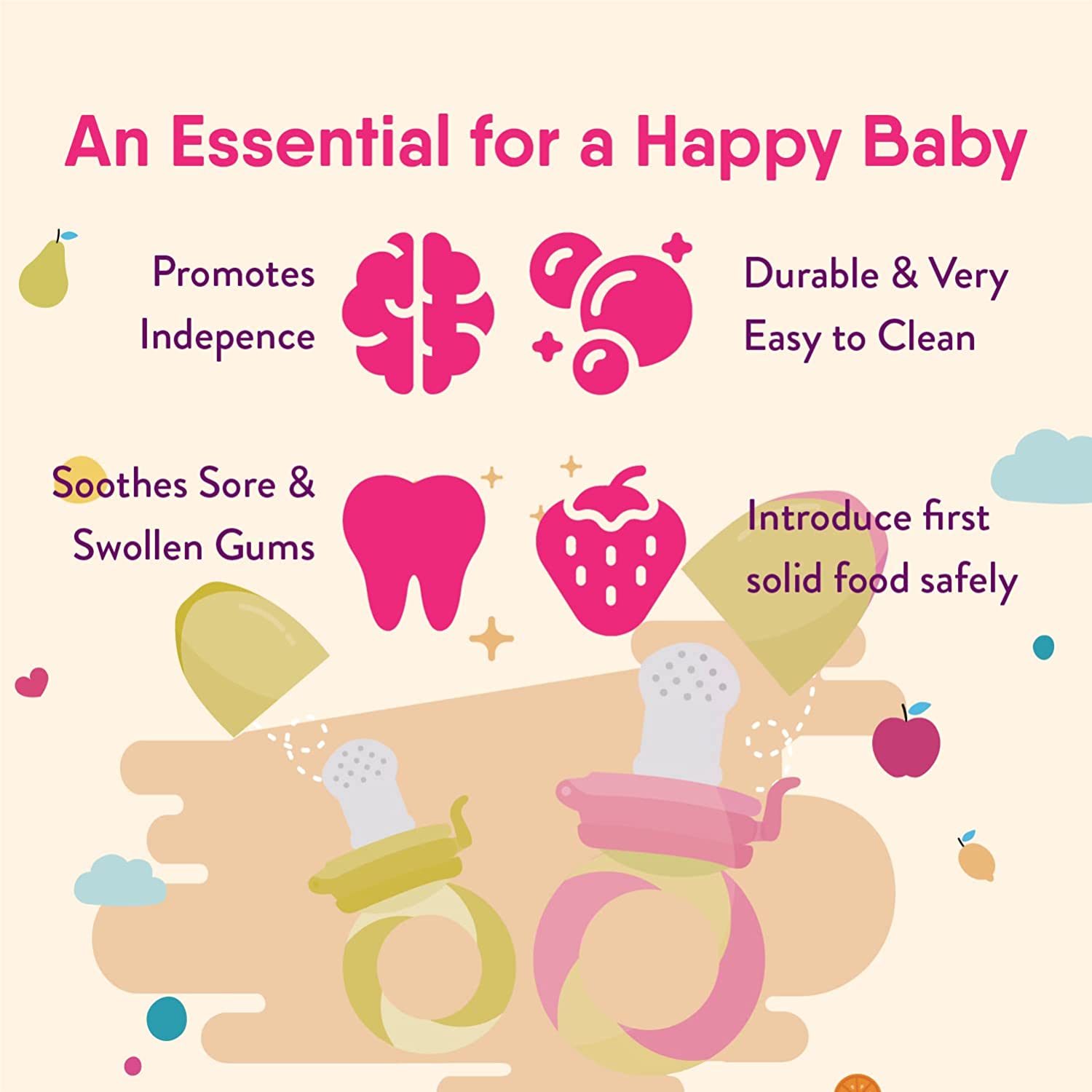 NatureBond Baby Food Feeder/Fruit Feeder Pacifier (2 Pack) - Infant Teething Toy Teether | Includes Additional Silicone Sacs