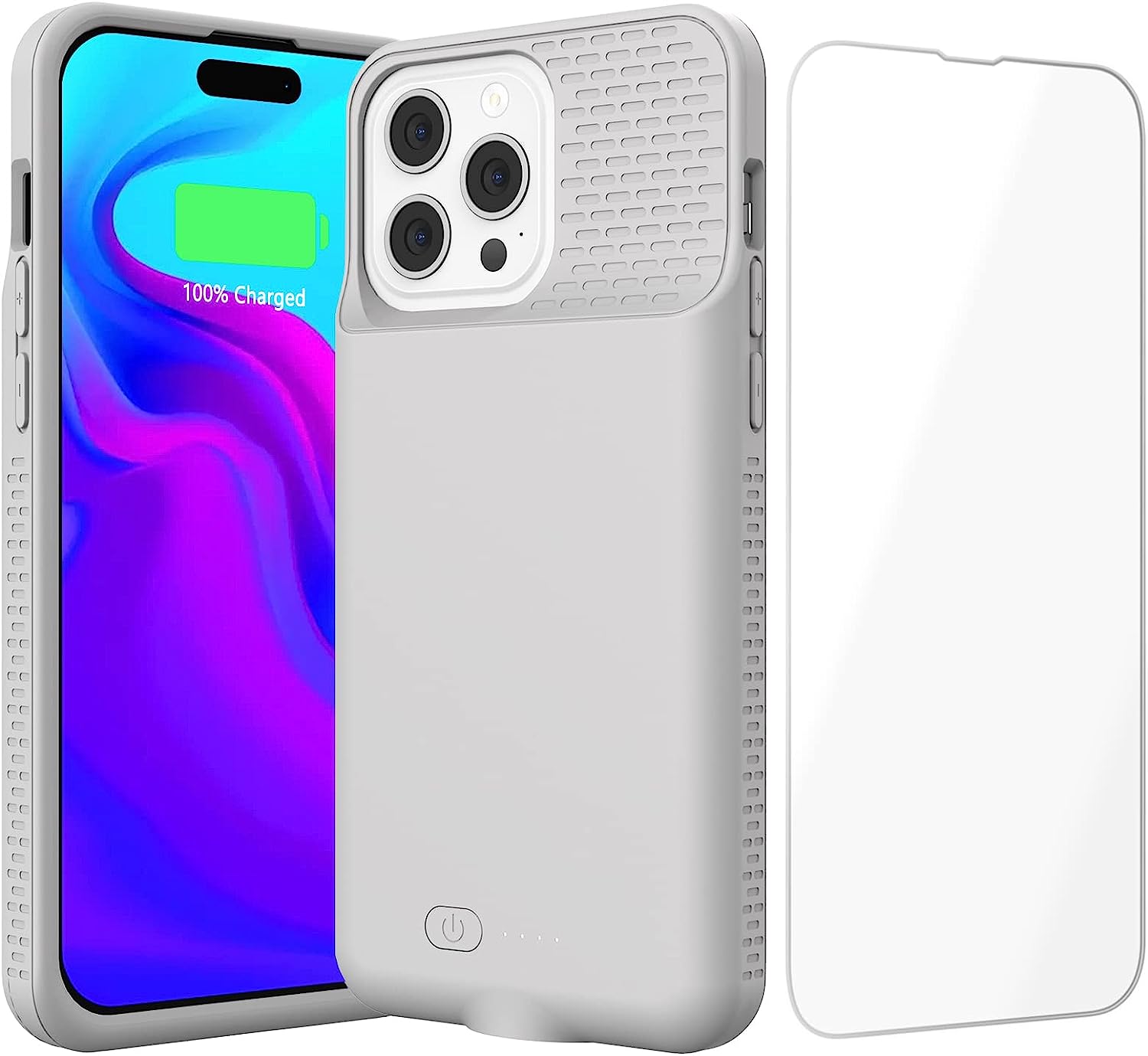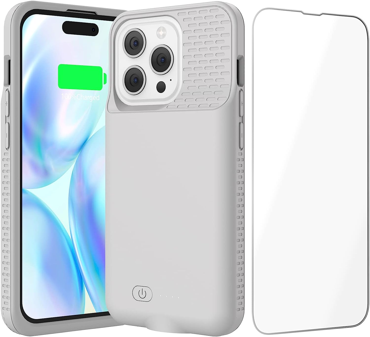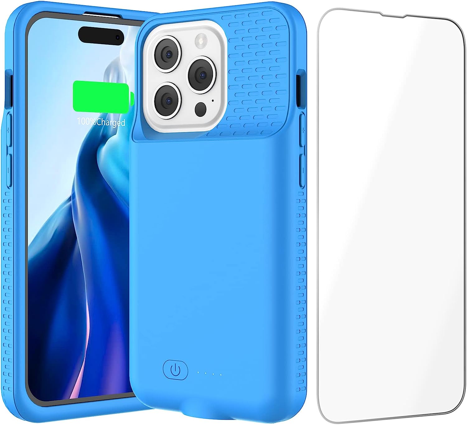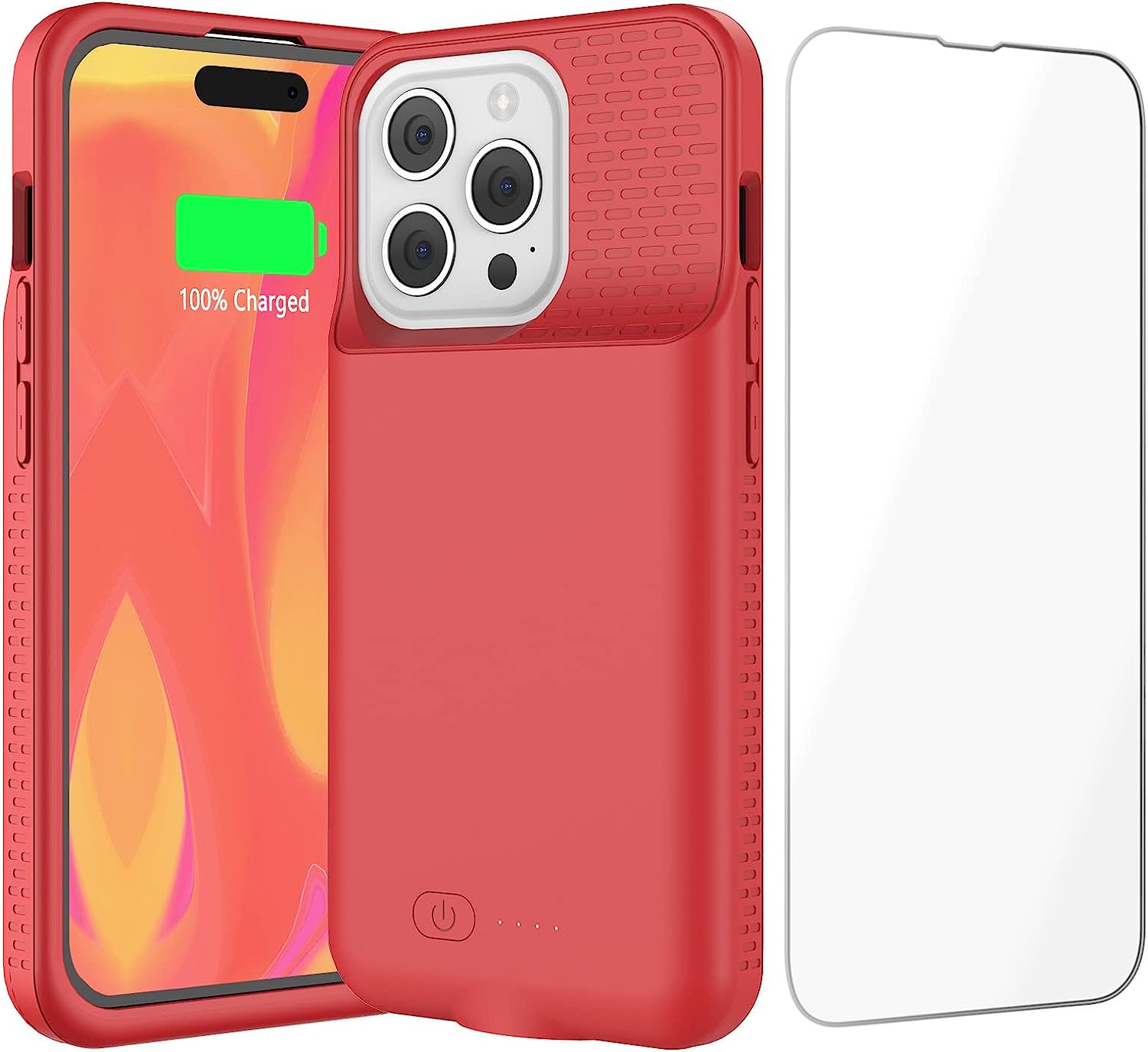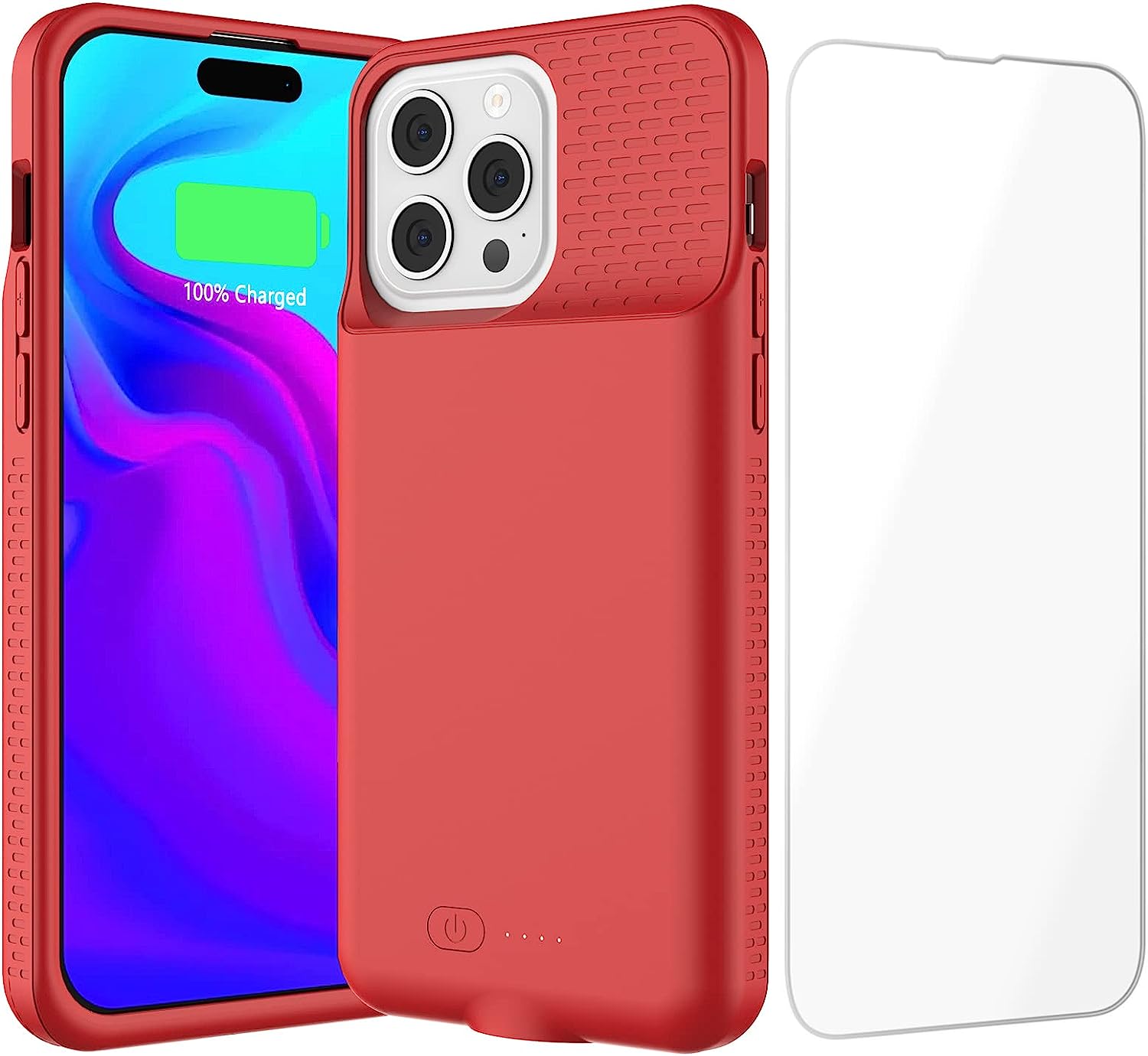 • ⚡【10 HEAVY SECURITY PROTECTION, BETTER PROTECT YOUR PHONE】🔋Built-in smart charging internal chip protect both your iPhone and battery charging case from over-charge, over-discharge, over-heat, over-current, short-circuit, etc. Certificated by CE, UL,FC and RoHs. 360° full bumper design and hard shell back to protect your phone from scratches and other daily wear and tear. Raised bezels offer front and surface protection. Tempered Glass screen protector included for full frontal protection.