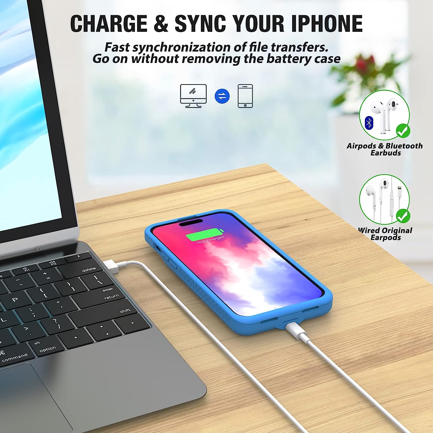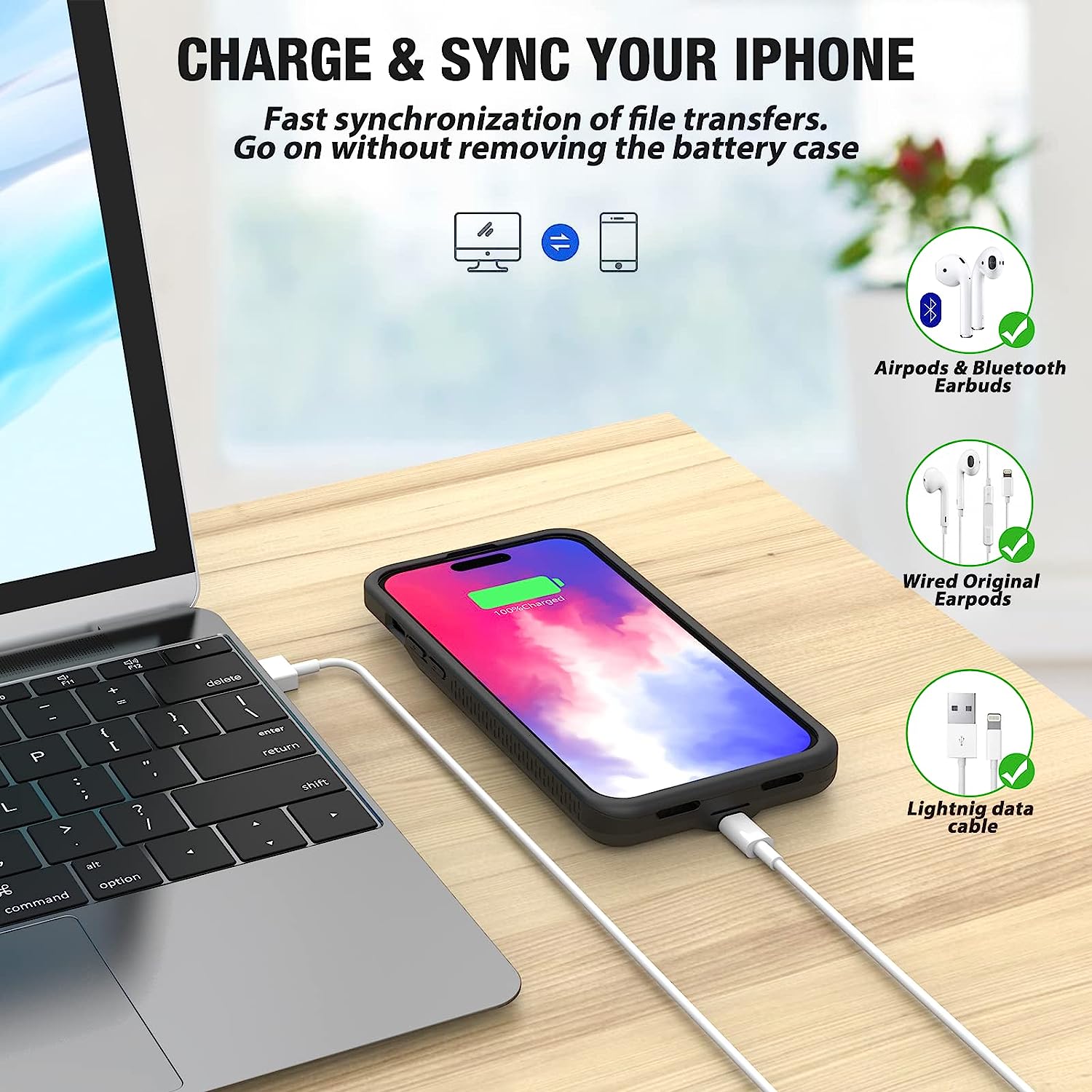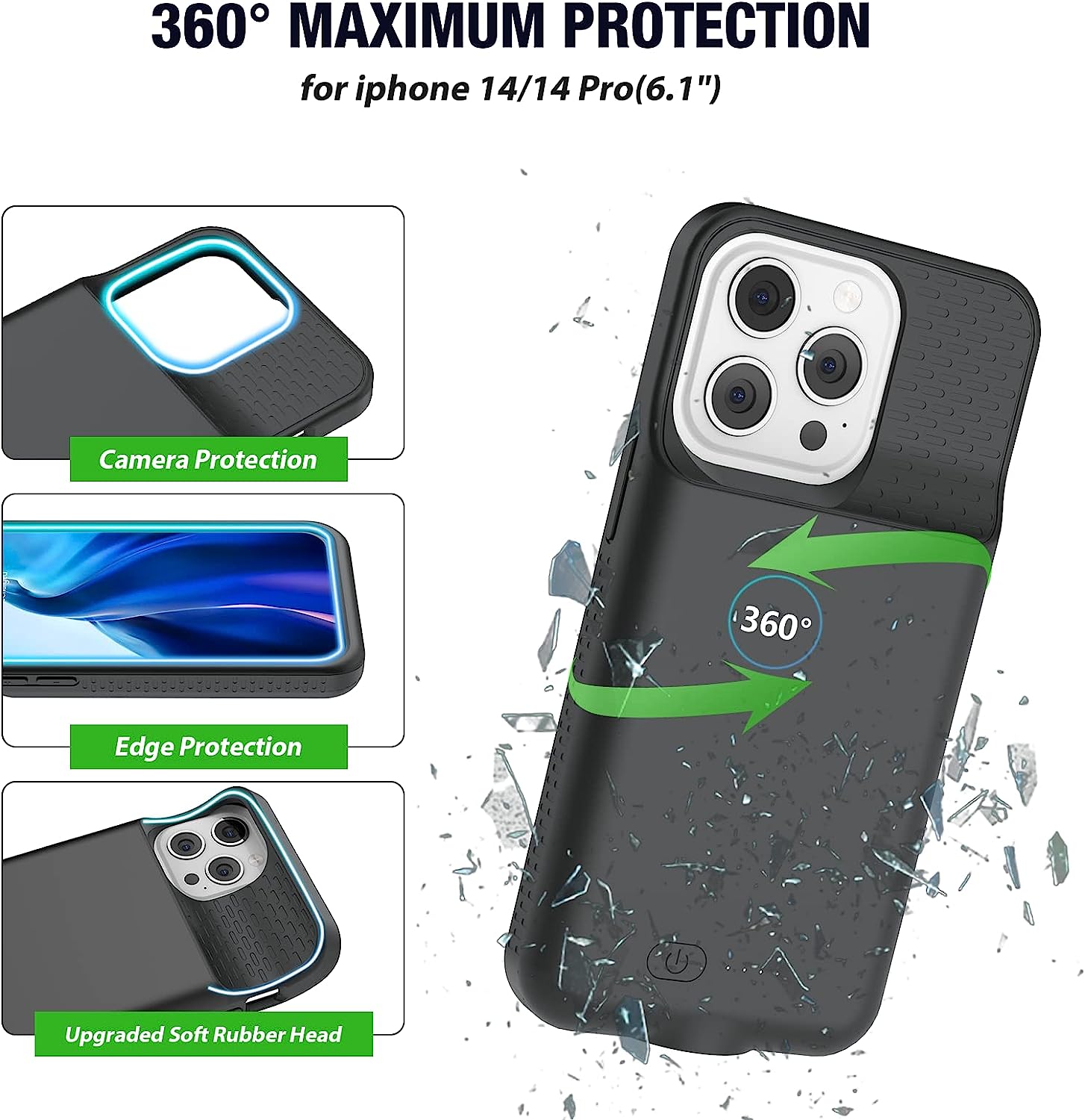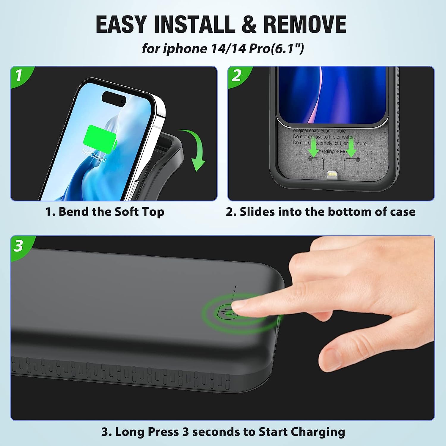 • ⚡【SUPER CRAFT & LONGER USE LIFE】🔋 Using advanced original iphone materials and the latest welding technology, long time use like new. Newest materials and technology, make our battery case longer use life than other battery case. Upgraded buttons of the charging battery case for more sensitive commands. Certified lightning chip ensures 100% compatibility with your iPhone 14/14 Pro, iOS 14+ and older, and Apple Pay.