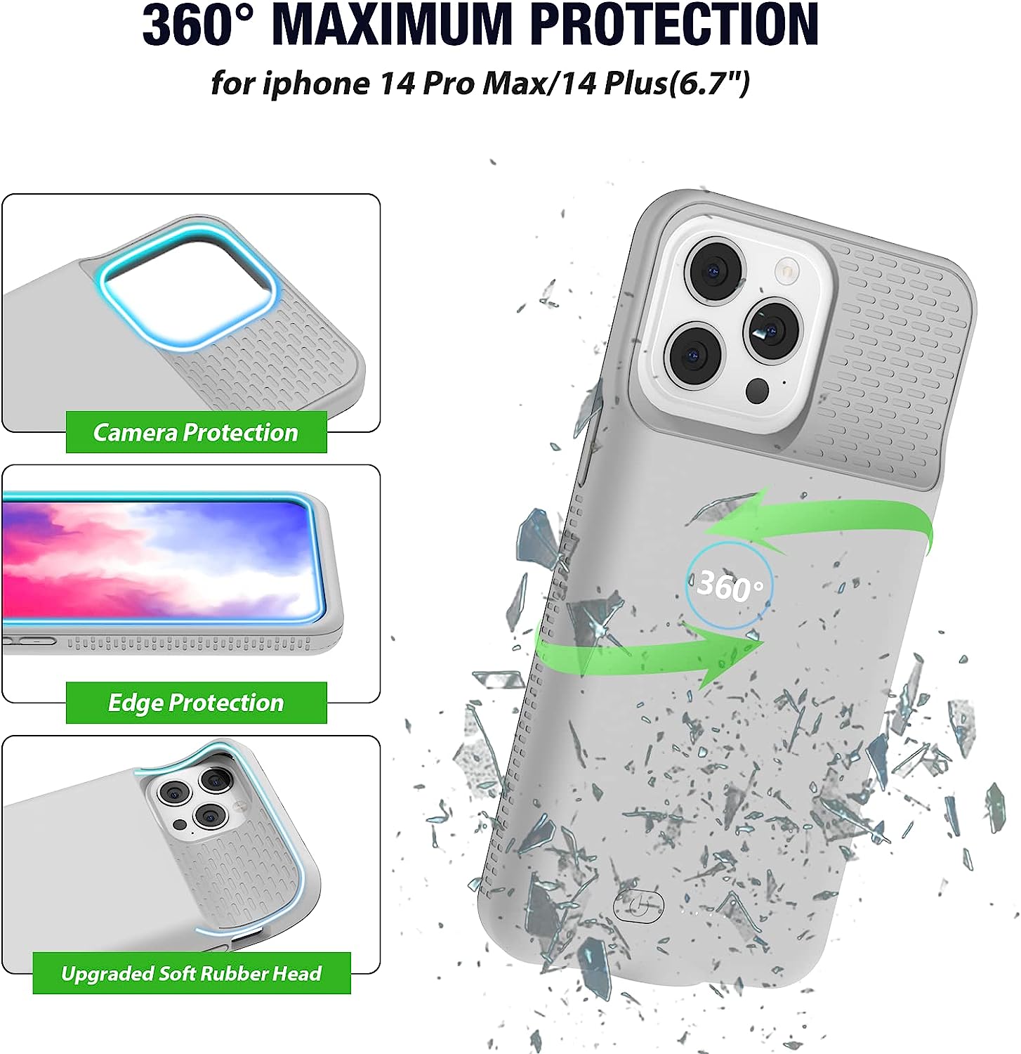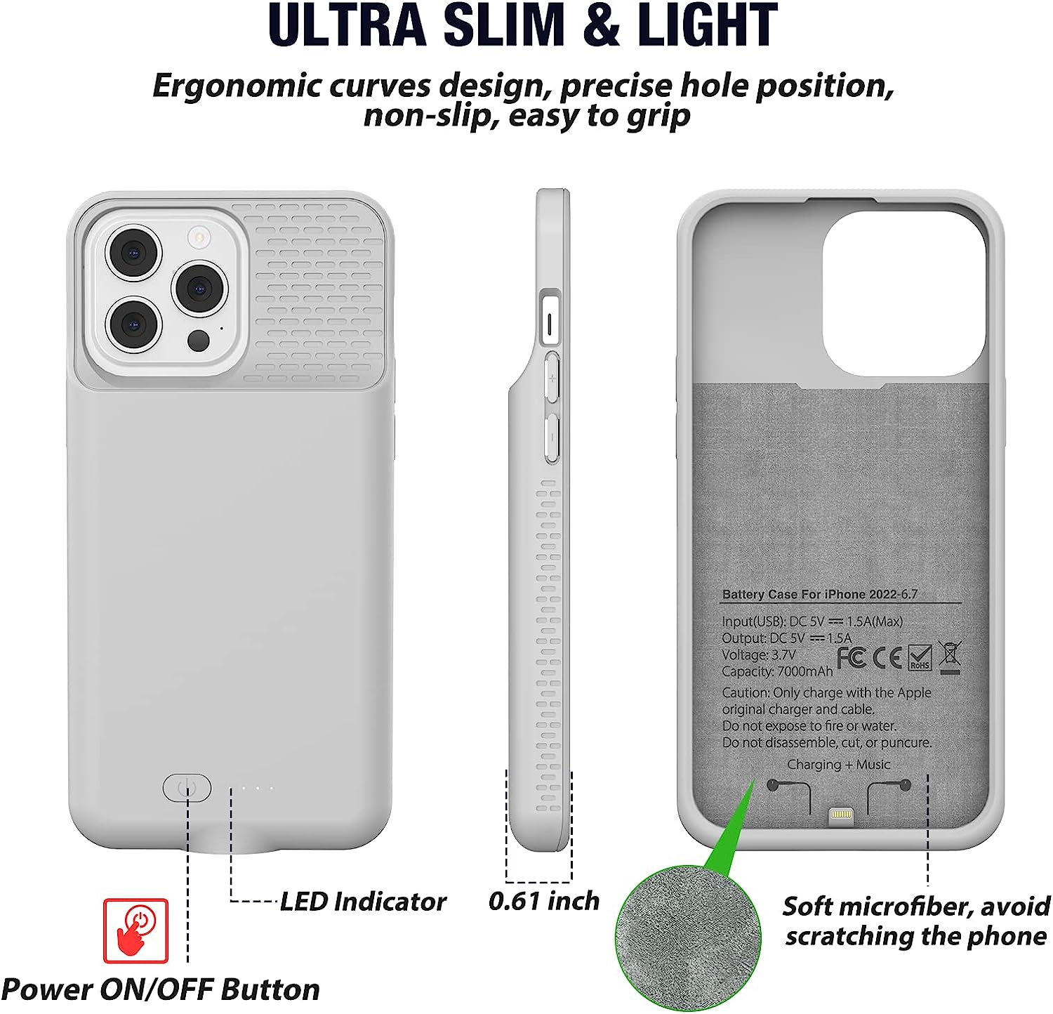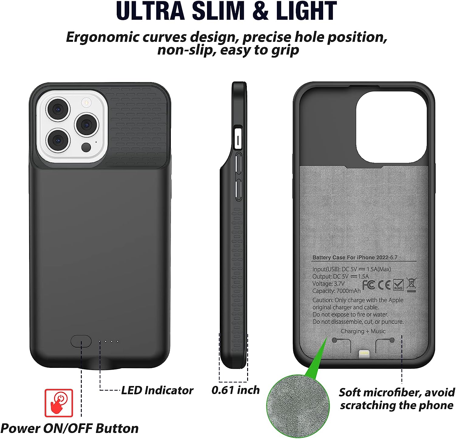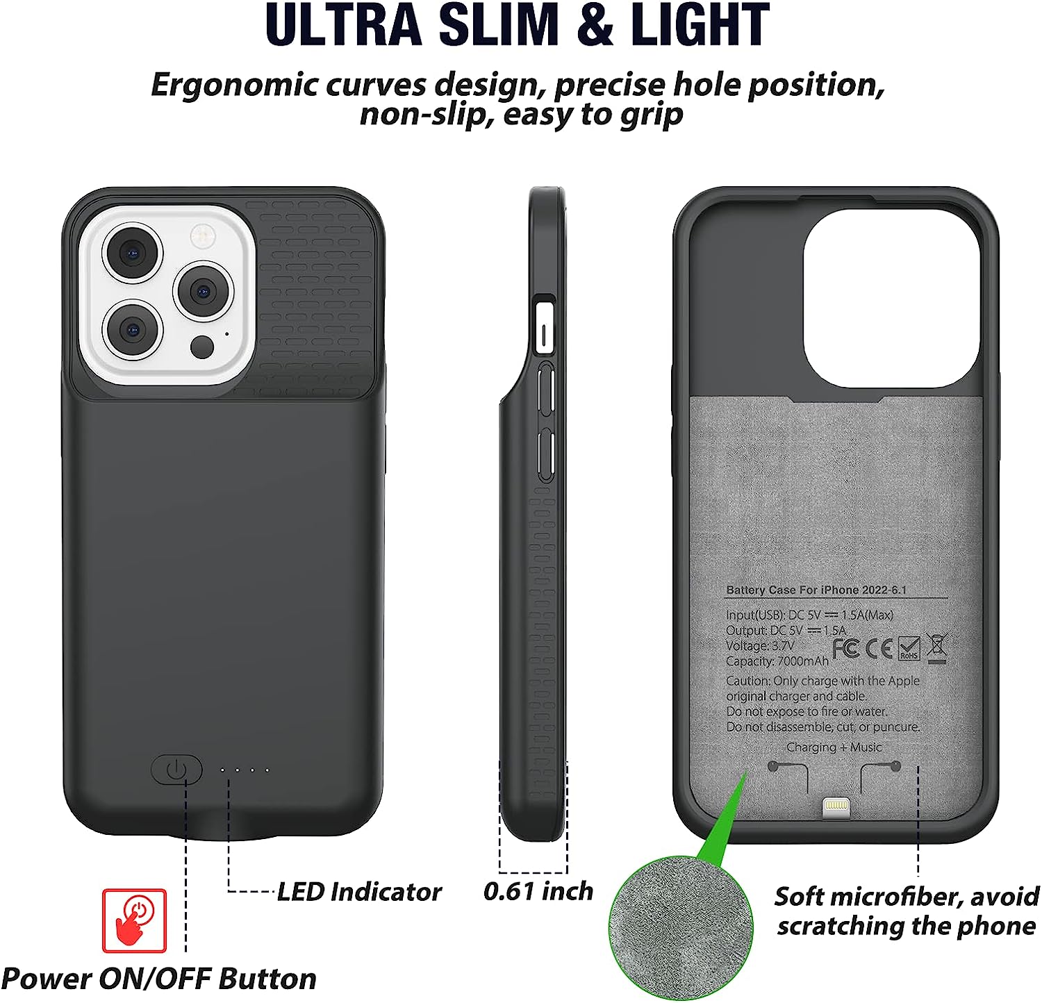 • ⚡【SUPER CRAFT & LONGER USE LIFE】🔋 Using advanced original iphone materials and the latest welding technology, long time use like new. Newest materials and technology, make our battery case longer use life than other battery case. Upgraded buttons of the charging battery case for more sensitive commands. Certified lightning chip ensures 100% compatibility with your iPhone 14/14 Pro, iOS 14+ and older, and Apple Pay.