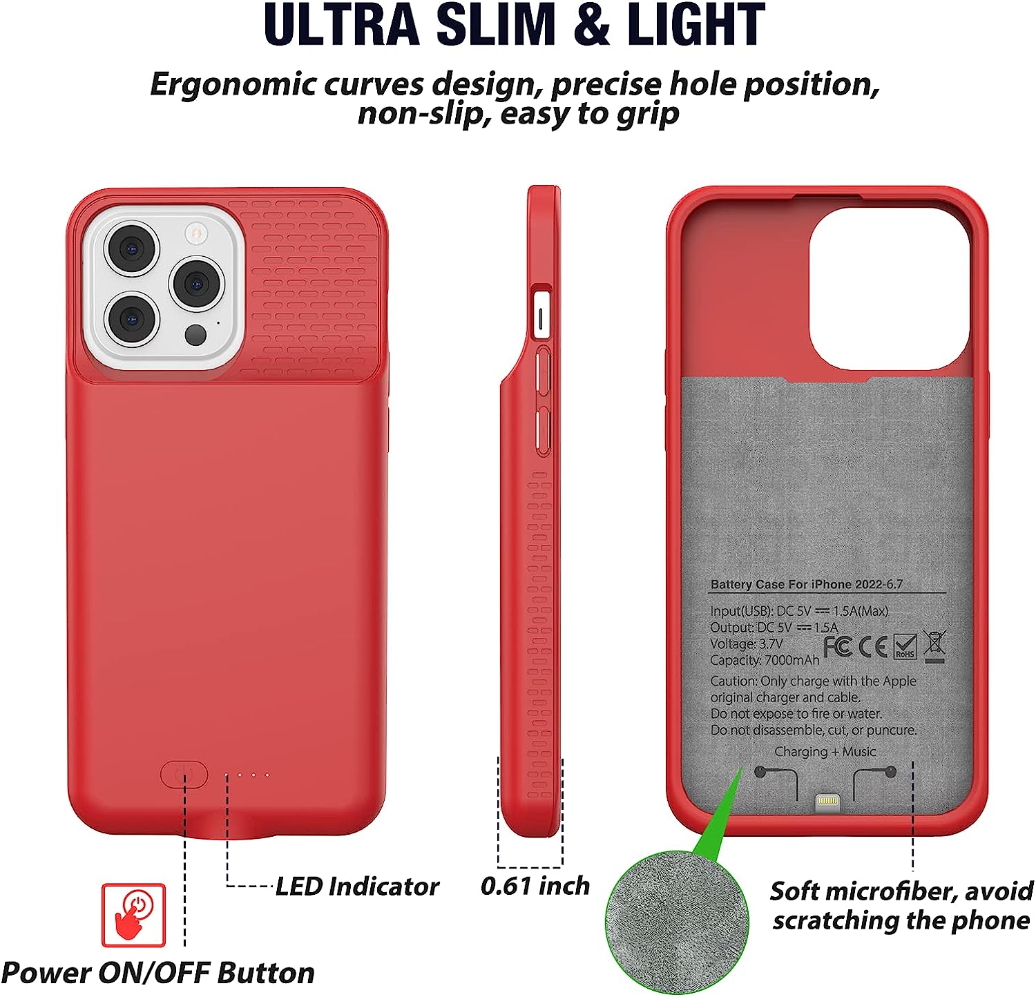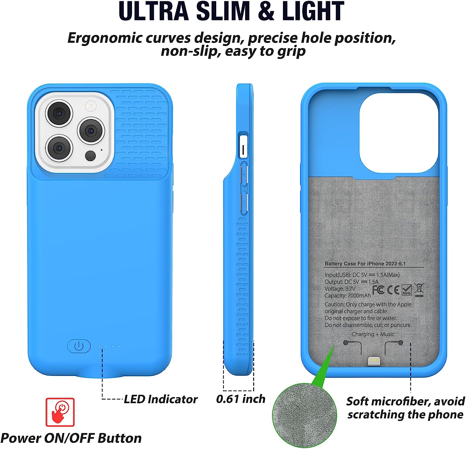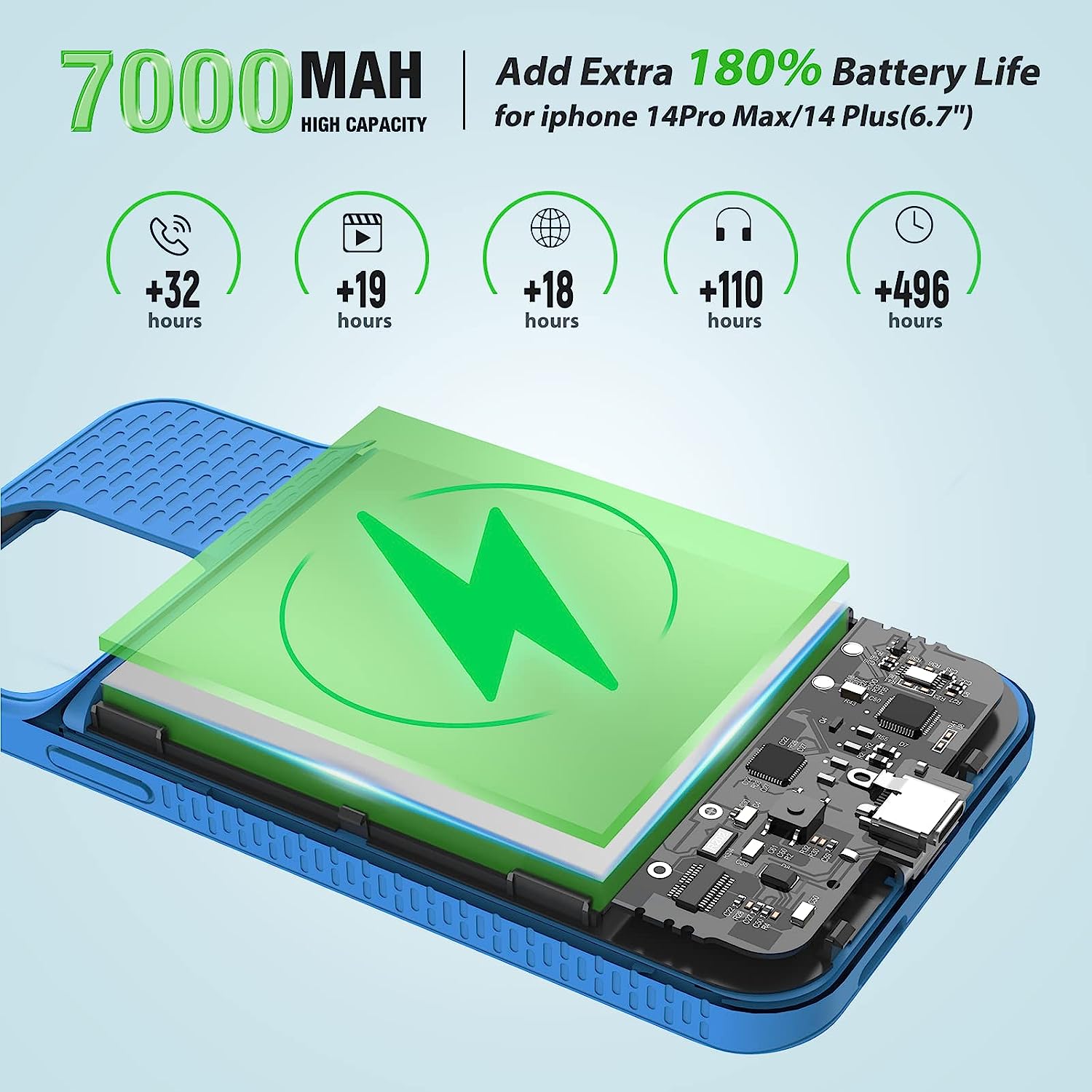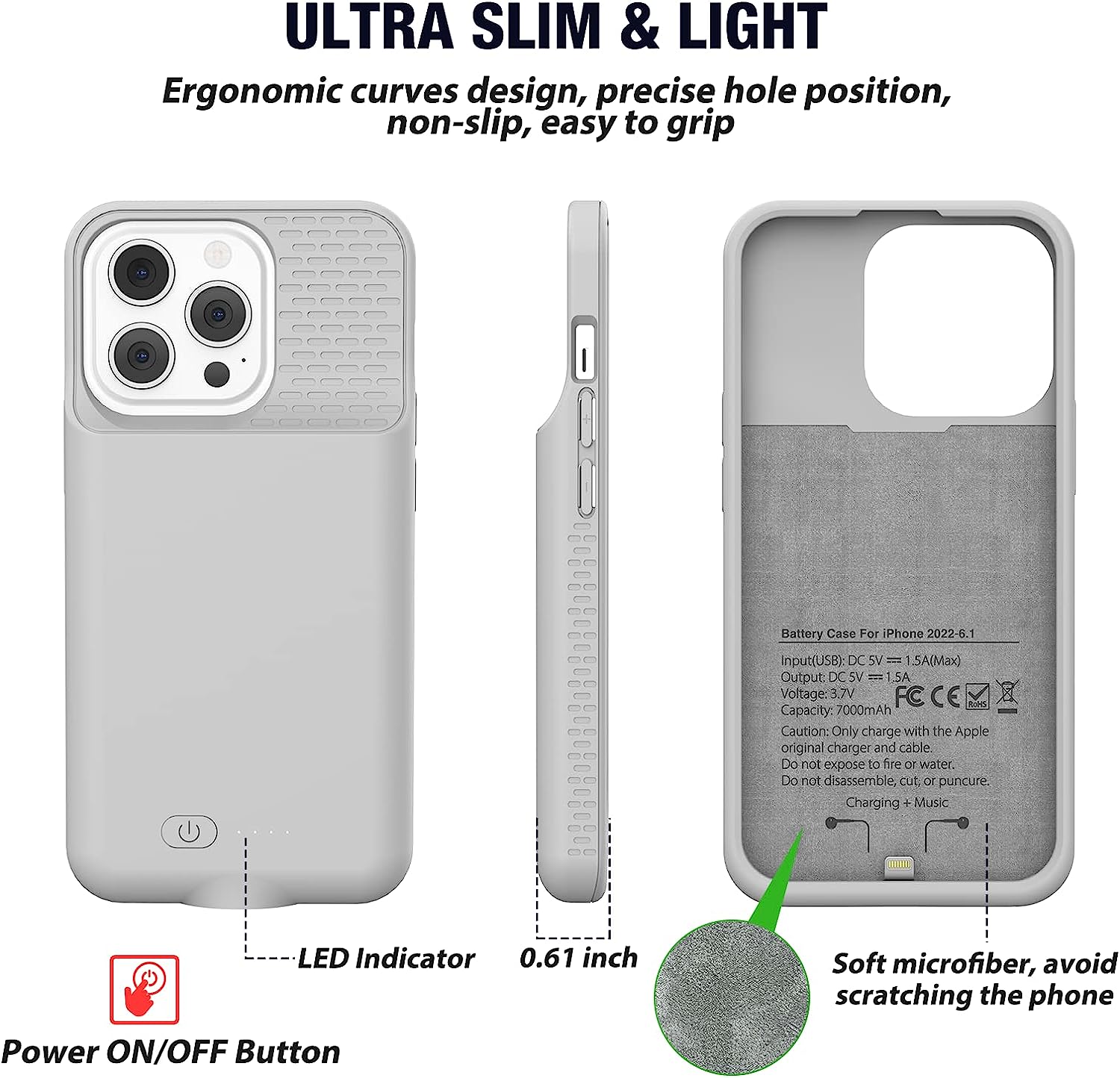 • ⚡【SUPER CRAFT & LONGER USE LIFE】🔋 Using advanced original iphone materials and the latest welding technology, long time use like new. Newest materials and technology, make our battery case longer use life than other battery case. Upgraded buttons of the charging battery case for more sensitive commands. Certified lightning chip ensures 100% compatibility with your iPhone 14/14 Pro, iOS 14+ and older, and Apple Pay.