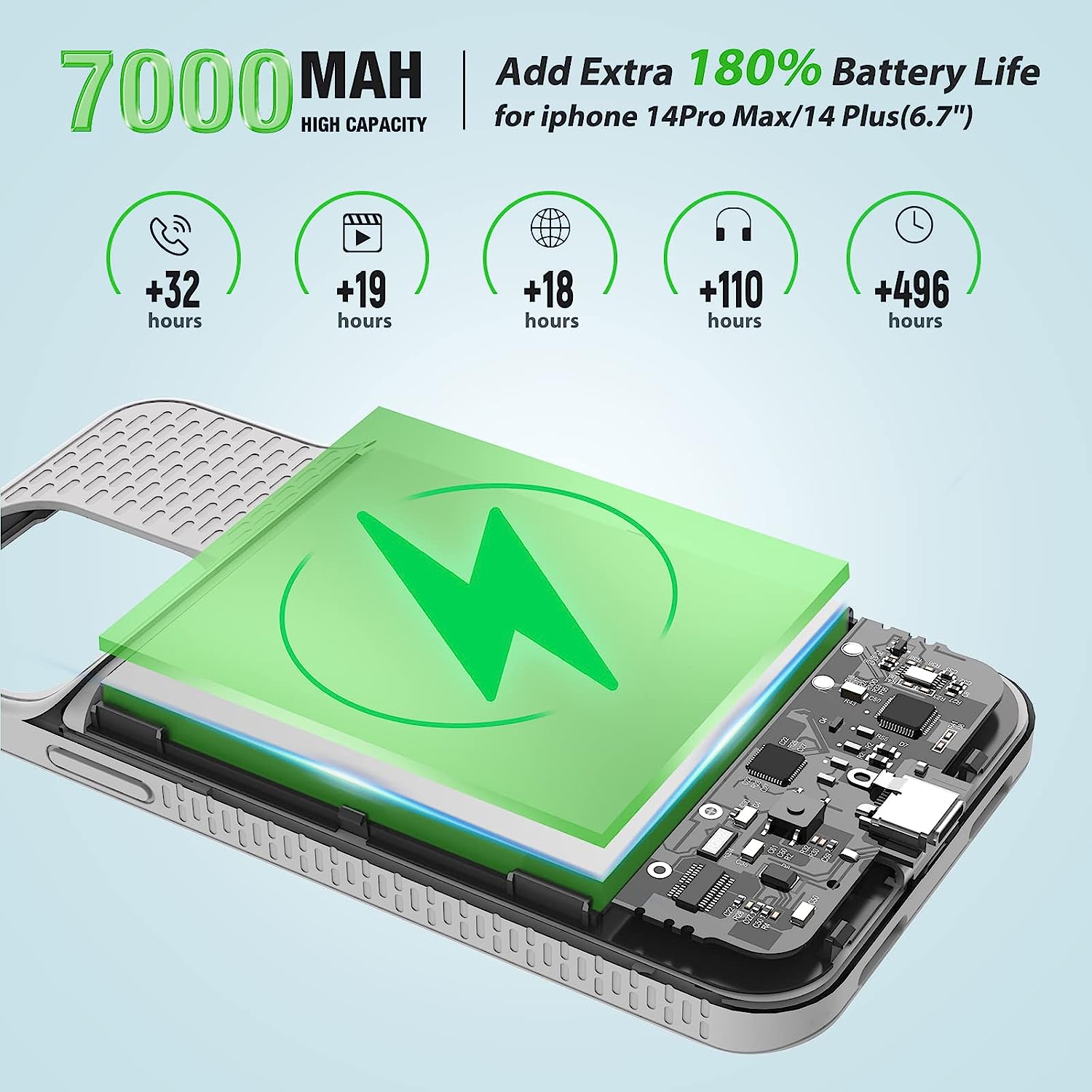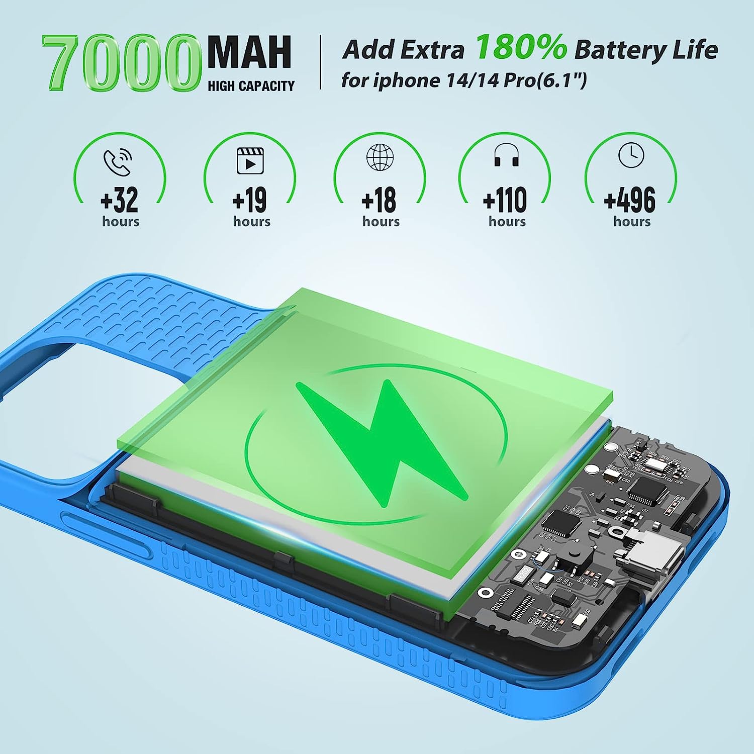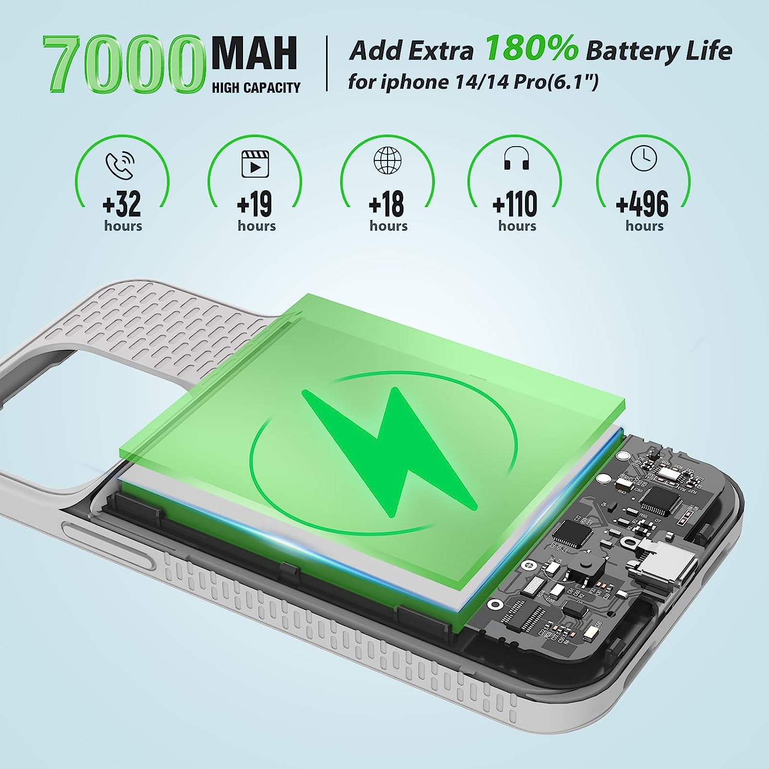 • ⚡【WHAT YOU WILL GET EXTRA】🔋Package included: 7000mAh GIN FOXI Battery Case for iPhone 14/14 Pro, 1 x User Manual, 1xTempered-Glass Screen Protector. GIN FOXI Products were designed in Ohio which is the most fashionable design capital of America. We promise 12-months worry-free and lifetime customer service to ensure long-lasting enjoyment of your purchase.