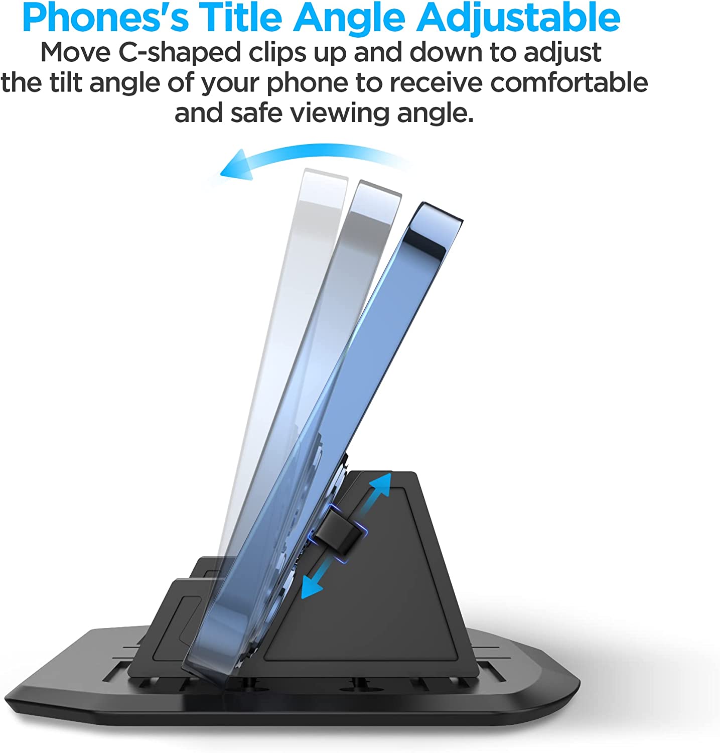 • 【Phones's Title Angle Adjustable】Use 2 C-shaped clips on the mounting holders, move them up and down to adjust the tilt angle of your phone.