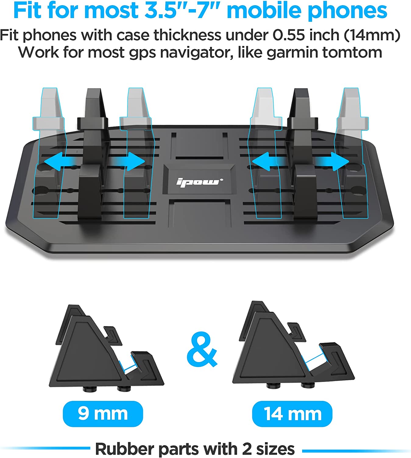 IPOW Anti-Slip Silicone Car Phone Dashboard Pad Mat,Hands-Free Cell Phone Holder for Car/Home/Office Compatible with iPhone 7 7P 6s 6 X XS 8 8P 5S,Galaxy S8 S7 S6 S5, Google Nexus
