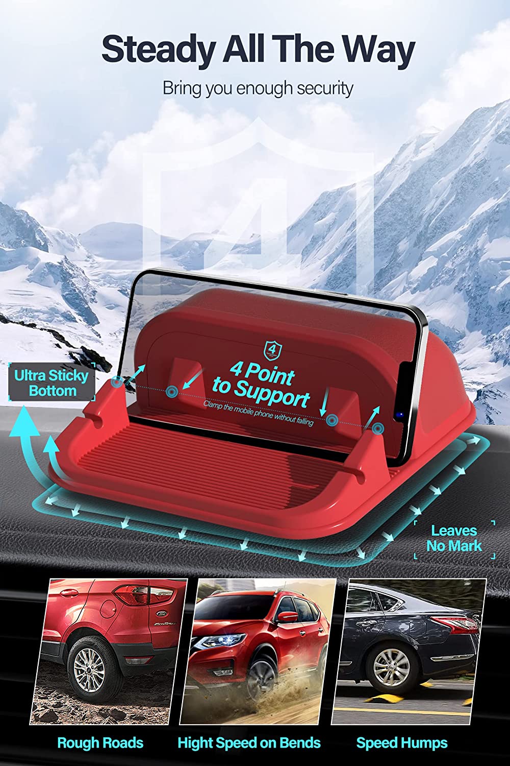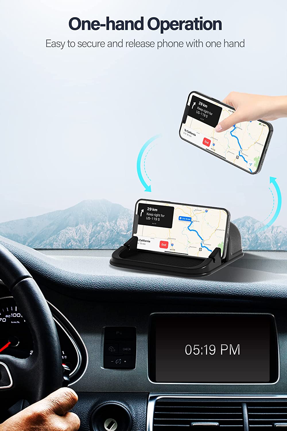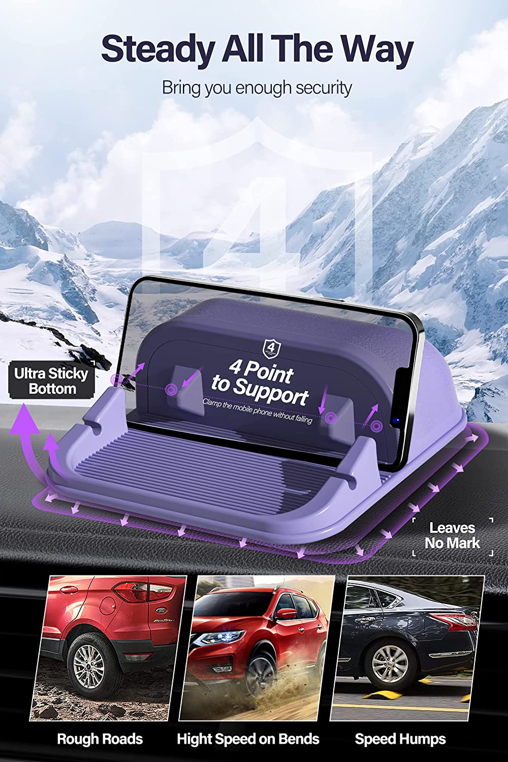 • Reusable & Washble, Long Term Effective: The car phone holder is washable and reusable to make it stickier again. When it gets dirty, you can move it without any residue left behind. And then You can clean the bottom with water and after it dried and it can stick to your dashboard again.