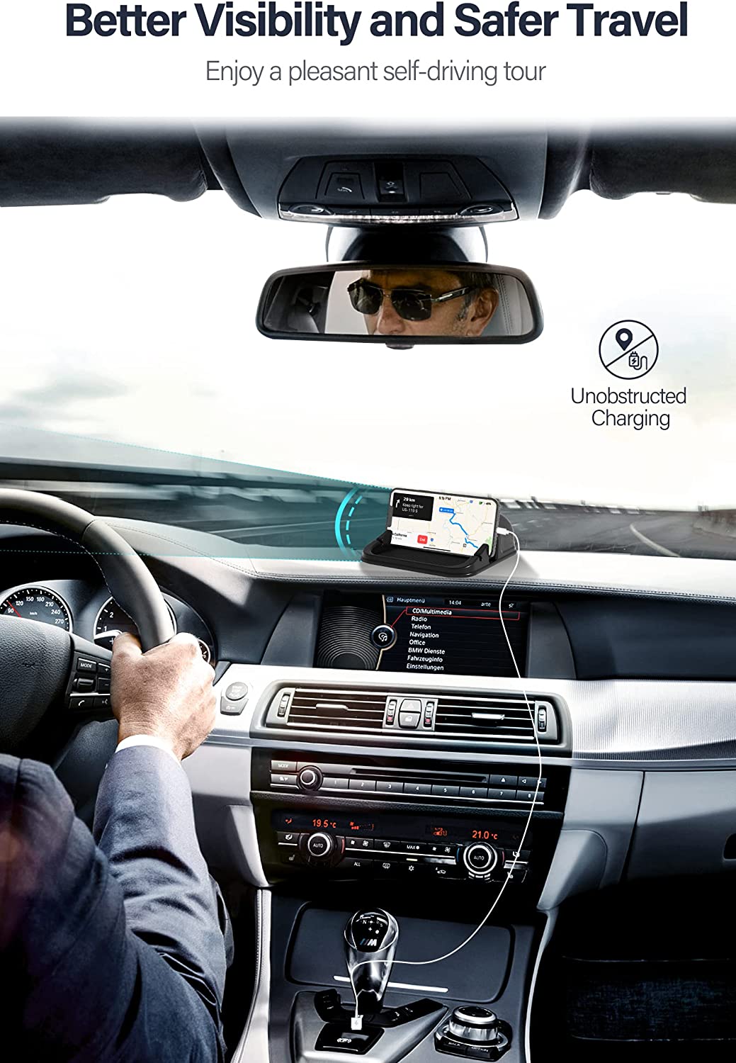 • Low Profile, No Distractions: This actually meets your demand for a dashboard phone holder to provide an option for a 'heads-up' display when needed on long or new trips to unfamiliar places. It's low profile keeps it from encroaching into your view of the road, and the phone mount for car allows you to check the map (such as Google maps, Apple Maps, etc.) without looking down & away from the road. It's an irreplaceable item for Uber, truck and taxi drivers.