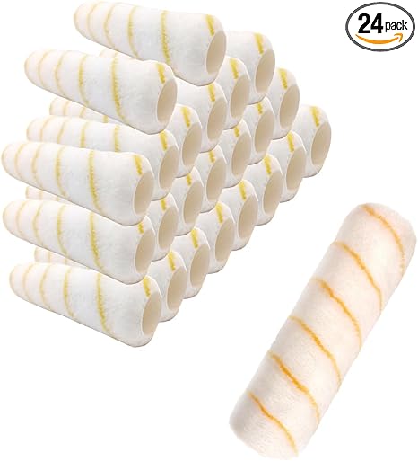 24 Pcs Paint Roller Covers 9 x 3/8 Inch Polyester Small Paint Roller Covers, Roller Cover for Painting Walls Ceilings, Roller Paint Brush Covers, nap Rollers(White, Yellow)
