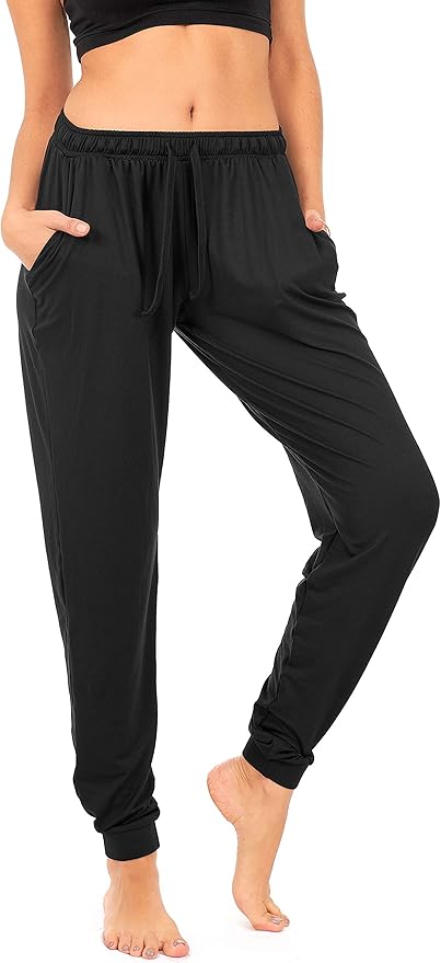 Jogger with Pockets for Women Drawstring Lightweight Sweats Yoga Lounge Pants + Plus Size (P7)