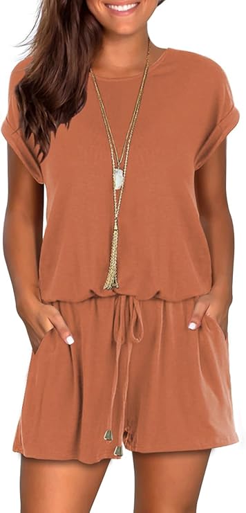 Mokayee Womens Summer Cute Front Tie Short Jumpsuits Rompers with Pockets