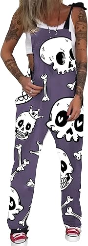 PAODIKUAI Women's Casual Skull Printed Overalls Loose Rompers Jumpsuit with Pockets