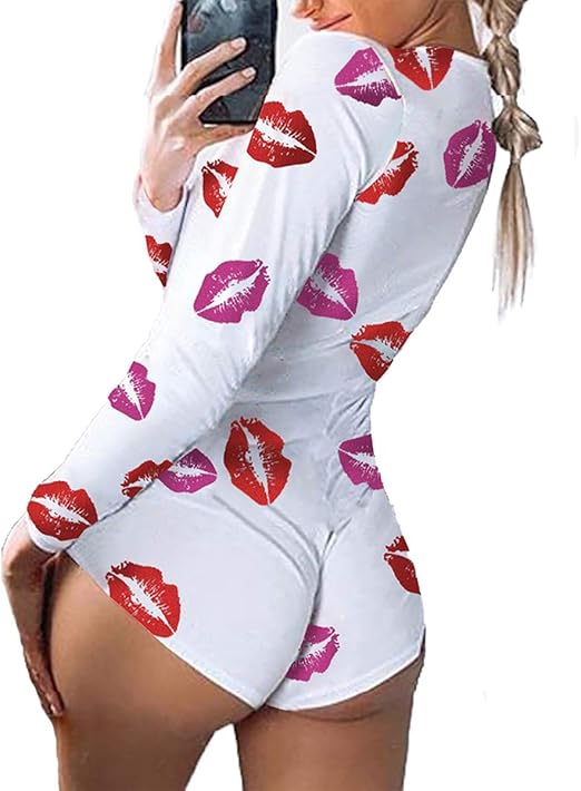Women's Sexy Long Sleeve Short Jumpsuit Button Down V Neck One Piece Bodysuit Club Tank Romper Overall Pajama