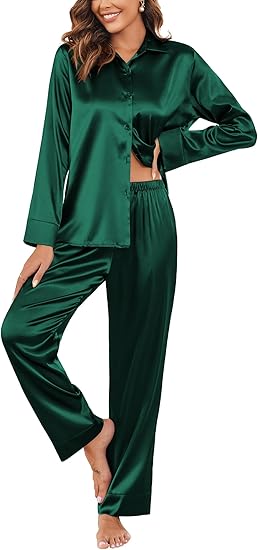 Ekouaer Classic Satin Pajamas for Women Long Sleeve Button Down Sleepwear Soft Silk Loungewear Pjs Set S-XXL