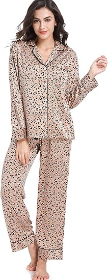 Serenedelicacy Women's Satin Pajama Set Long Sleeve Button Down Sleepwear 2-Piece Striped Silky Pj Set