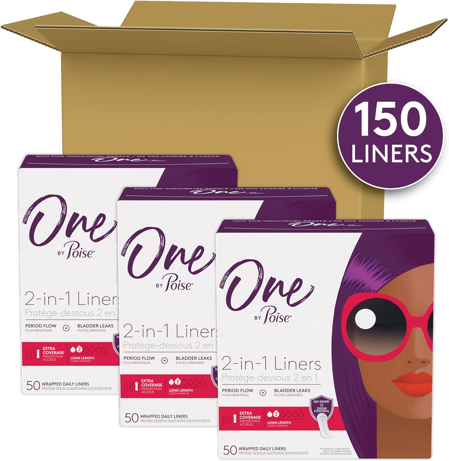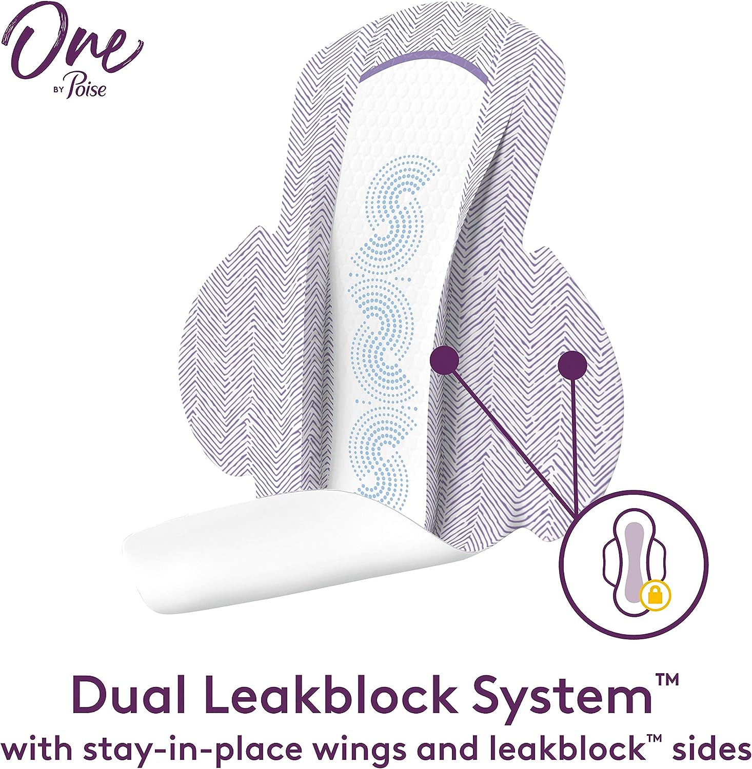 One by Poise is the dual use feminine liner you’ve been waiting for! Featuring a 2-in-1 absorbent core designed specifically to lock away period flow and bladder leaks. This is your all-in-one panty liner with the all-in-one protection you deserve. Perfect for women who need a menstrual liner and a bladder control liner. One by Poise pantiliners for women stays 10X drier* and provide odor control so you can feel dry, fresh and comfortable every day of the month. Great for use as a postpartum or maternity liner. Incredibly thin protection that moves with you, providing you protection from all your leaks, all in one convenient daily liner. One by Poise Pads and Panty Liners for women are HSA/FSA-eligible in the U.S. Always ship in a discreet box, directly to your door. Packaging may from images shown.*for bladder leaks vs leading period liner