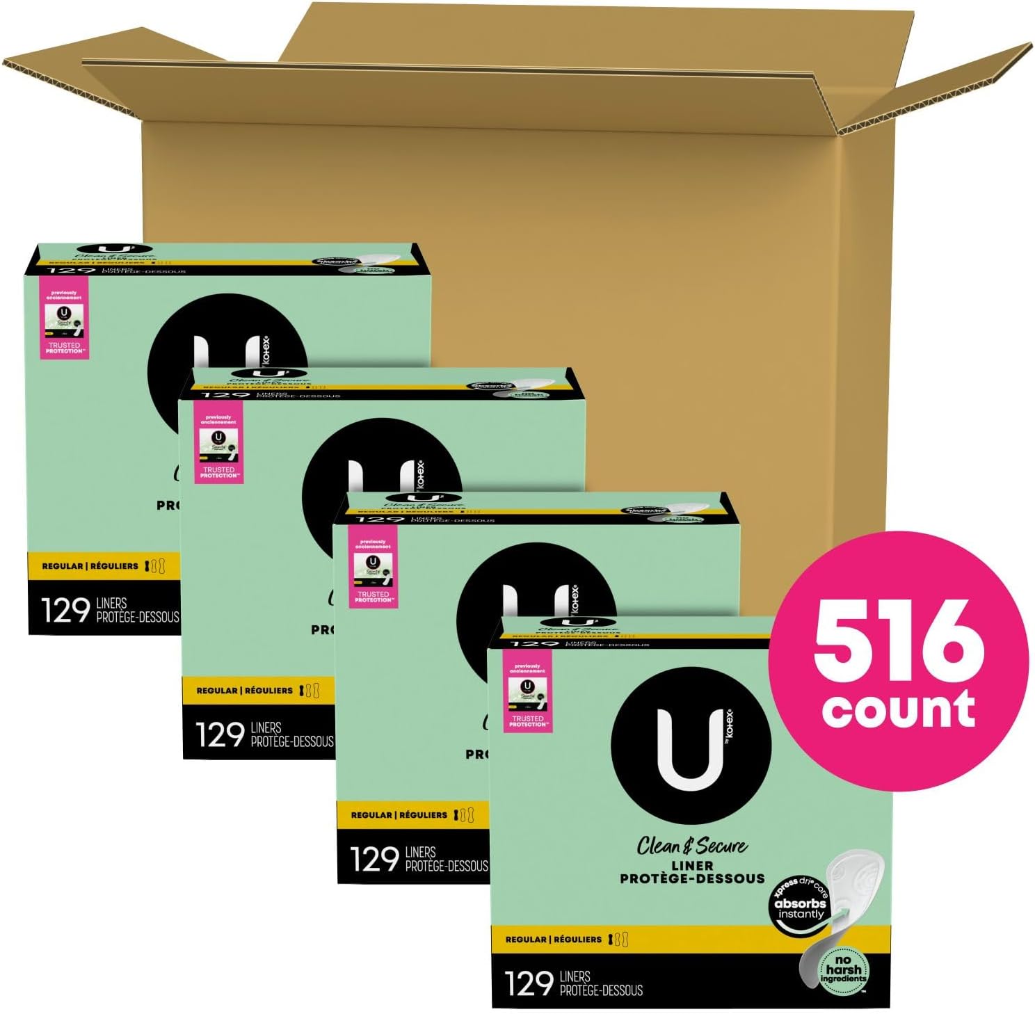 Spend your days feeling clean and dry with the U by Kotex Clean & Secure Panty Liners, designed for you and your light days! With U by Kotex's unique Xpress-Dri core, these panty liners absorb instantly. They are designed to fit comfortably while the front-to-back adhesive keeps the liner in place throughout the day. U by Kotex Clean & Secure Panty Liners are also hypoallergenic, dermatologist-tested to be gentle on skin and made with no harsh ingredients. They do not contain any fragrances, lotions, pesticides, elemental chlorine or natural rubber latex. Not only that, but our Clean & Secure panty liners are also designed to be breathable* with a cottony, soft-touch cover for extra comfort throughout your day. For reliable period protection on heavier days, try U by Kotex Clean & Secure Ultra Thin Pads. U by Kotex feminine products are FSA/HSA/HRA-eligible in the US. Packaging may vary from images shown. (*breathable top sheet)