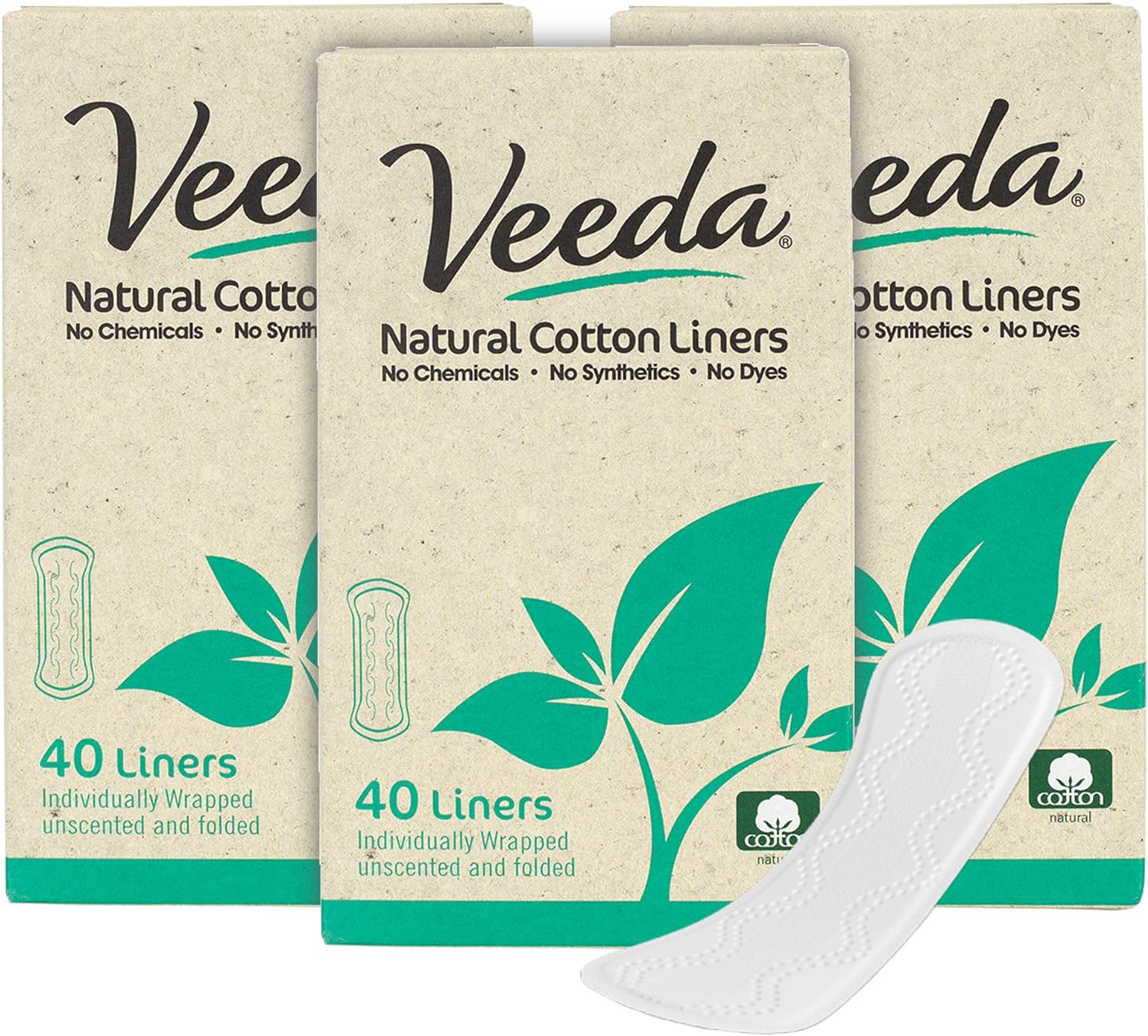 Veeda Ultra Thin Natural Cotton Breathable Daily Liners are Always Chlorine and Toxin Free, Hypoallergenic, 40 Count (Pack of 3)