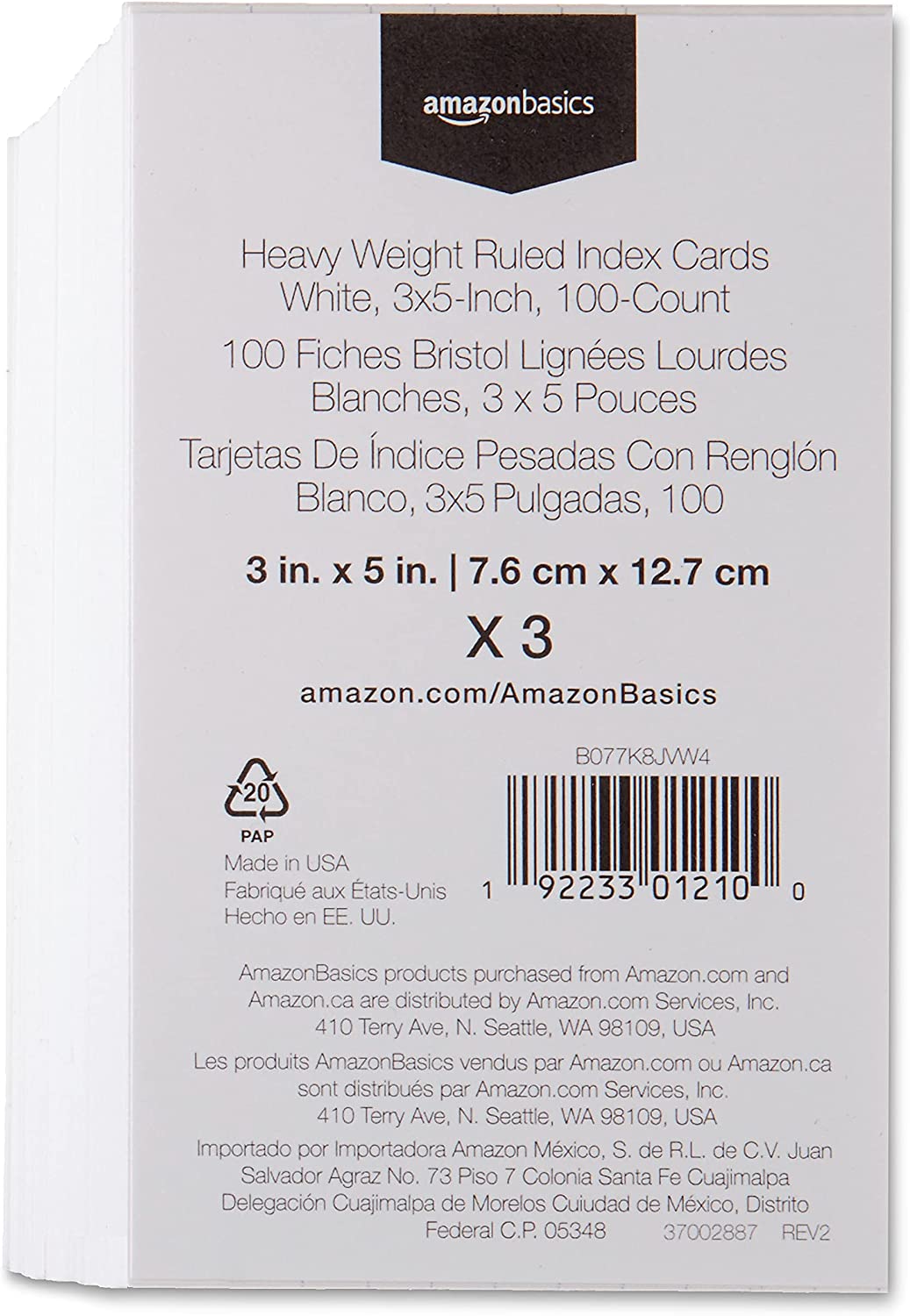 Basics Heavy Weight Ruled Index Cards, White, 3x5-Inch, 300-Count