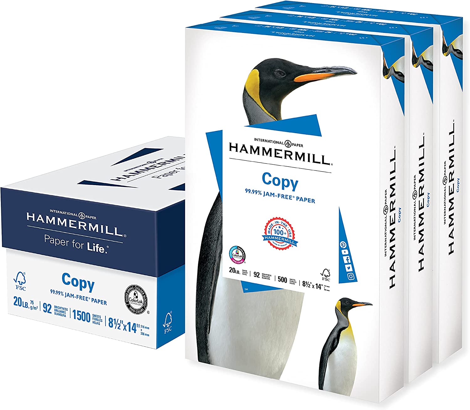 The Hammermill Paper 99.99% Jam-Free: You will not experience more than one jam in 10,000 sheets using Hammermill copy paper on your high-speed digital printer or we will replace your Hammermill paper purchase. We test more than 13.5 million sheets of paper every year to make sure that each sheet is consistent. Then we test our papers on all kinds of printer and copier equipment to ensure that our paper will work well for you, every time, on every machine. Make sure it's original Hammermill quality: look for “Ships from and sold by” at the top of the page, under the product title. “It’s More Than Just Paper” to us and millions of sustainable forestry workers across America, including American family tree farmers. Hammermill papers are made with renewable resources from certified sustainably managed forests. We want our business to last for generations and that means taking good care of our environment. This Hammermill copy paper is an economical paper for multipurpose print and copy use. It is available in 8.5 x 11 letter size paper and 8.5 x 14 legal size paper. Hammermill Copy Paper is available in a single ream (500 sheets of paper) and in cases of paper-wrapped 3 reams (1,500 sheets), 5 reams (2,500 sheets), 6 packs of 400 sheets (2,400 sheets), 8 reams (4,000 sheets), 10 reams (5,000 sheets), in a bulk pack of 750 sheets, and a single pack of 400 sheets. Also available in full pallets and truckloads. Choose from items listed at top of page in Size and style name.