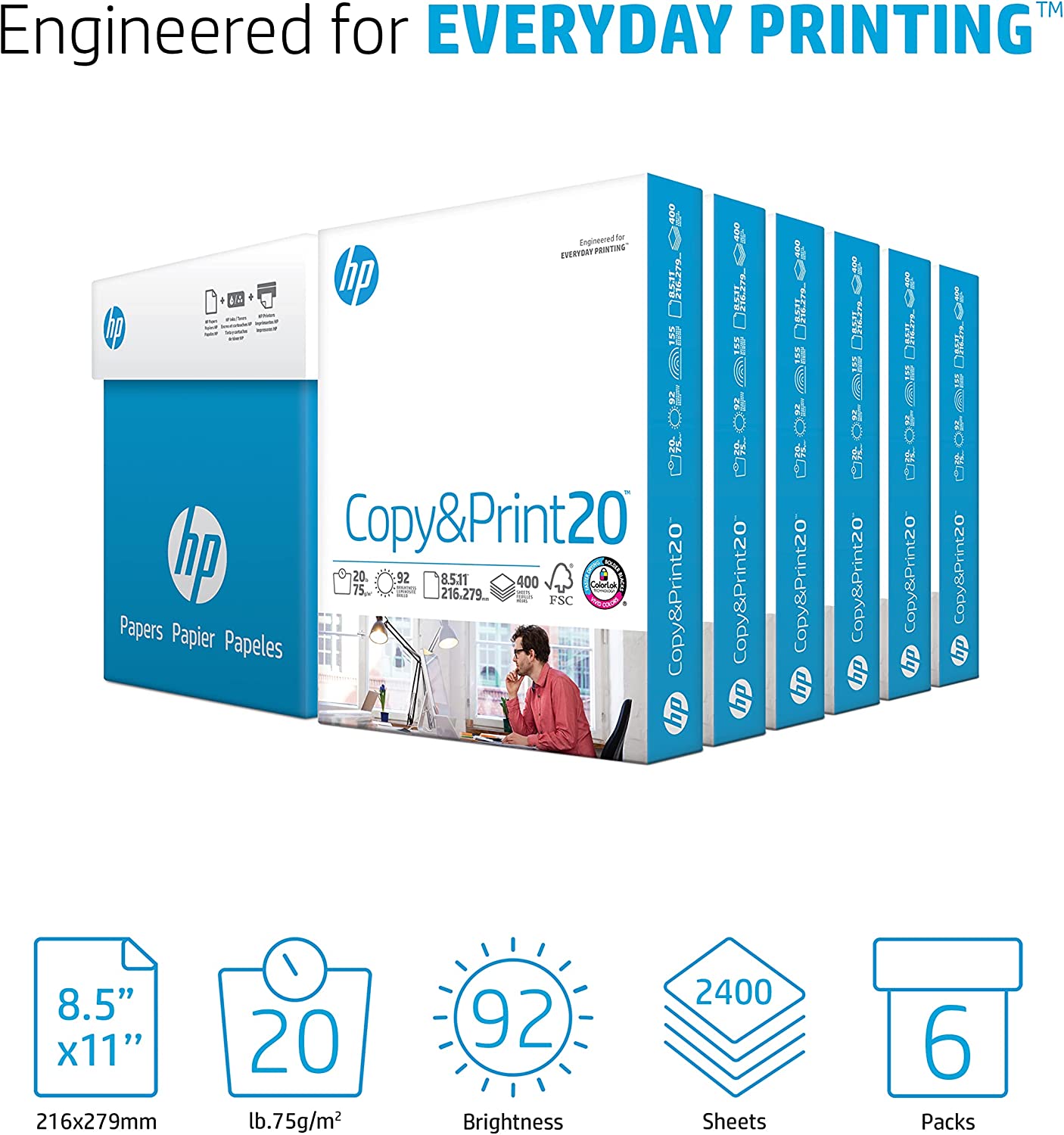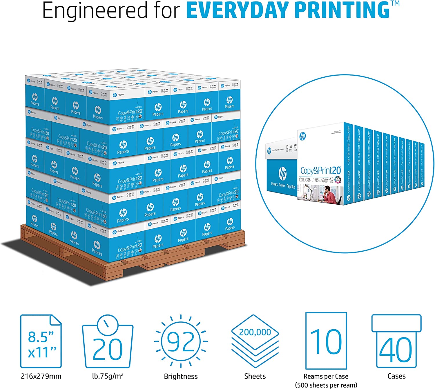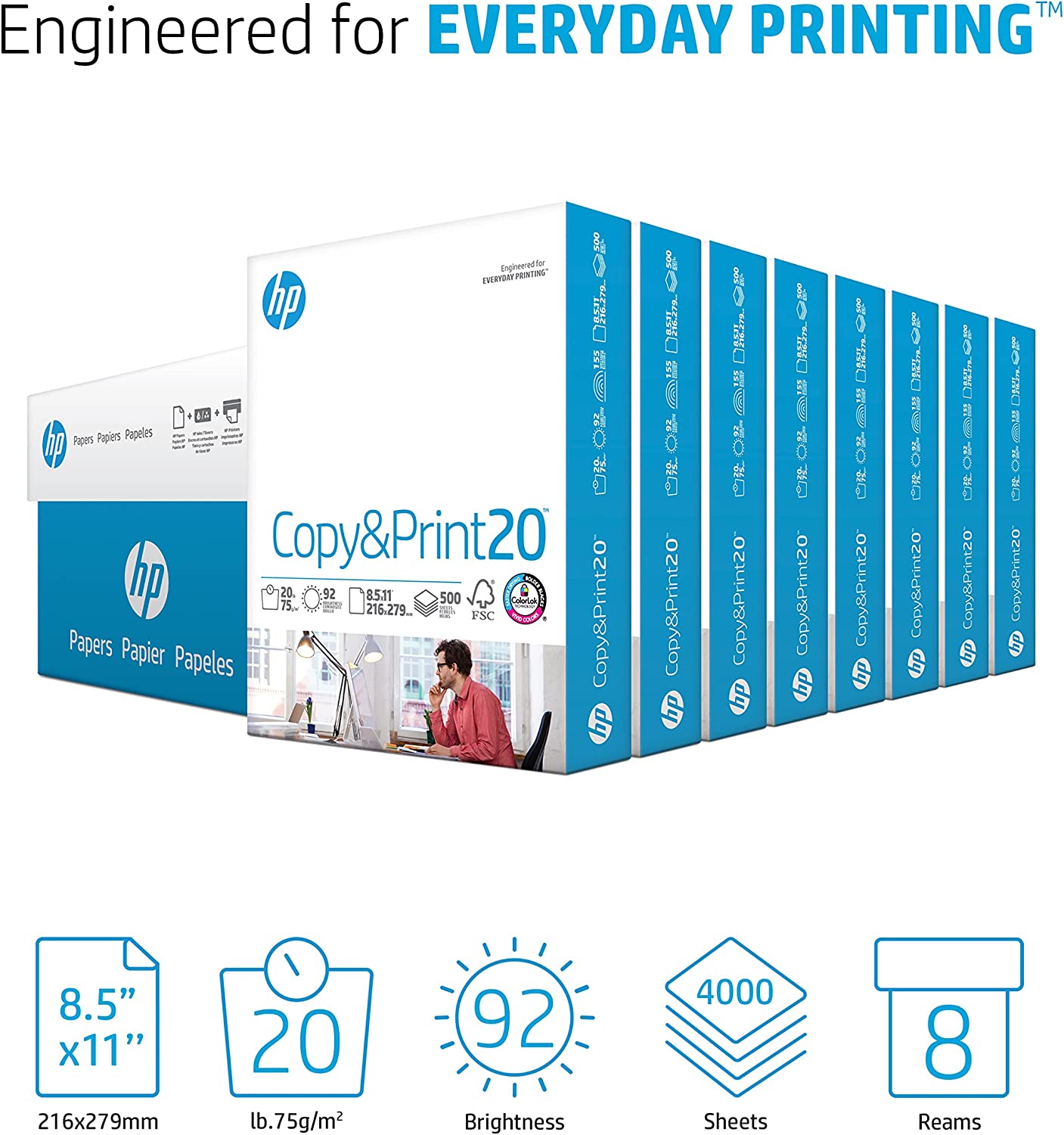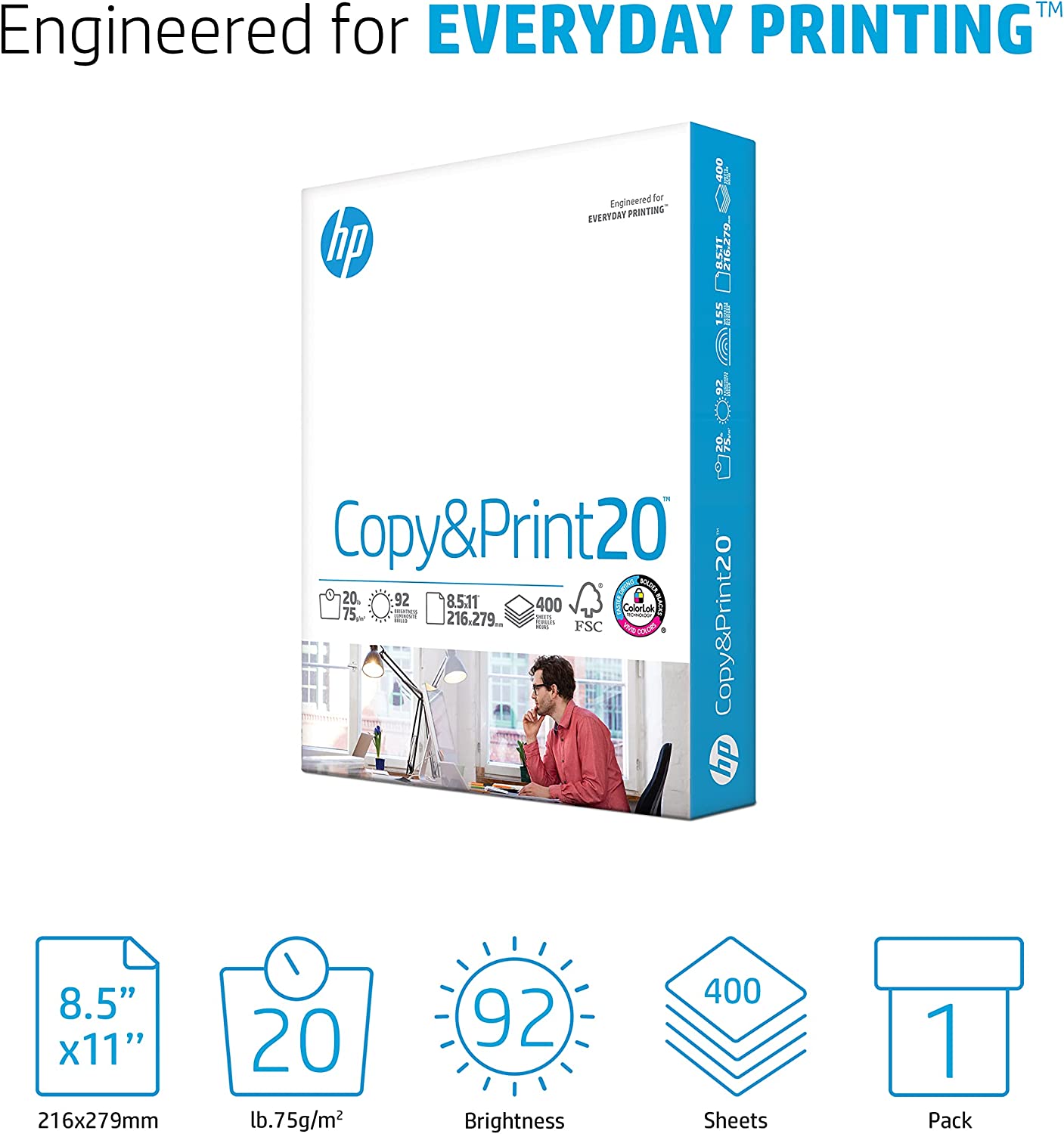 HP Papers is a premium line of uncoated printing paper optimized to provide superior print paper performance when used with HP hardware and supplies and in all other makes and models of printing and copying equipment. Launched in 1996, HP Papers are manufactured and marketed exclusively worldwide in over 75 countries by International Paper, a globally recognized leader in paper products, under license from the Hewlett-Packard Company. With a diverse range of products designed to support a wide range of print applications, from everyday copies to full-color presentations, you can be assured of consistent, high-quality print performance every time. HP Copy&Print20 Paper is a 20 lb, super smooth, economical and multipurpose paper for everyday printing at home, at school and in the office. HP Copy&Print20 offers HP quality and reliability at a great value. Its ultra-white shade (92 bright, 155 whiteness) and ColorLok Technology provides brighter colors and bolder blacks for reports, school work and all general printing needs. HP Copy&Print20 printer paper is available in 8.5 x 11 letter size paper.