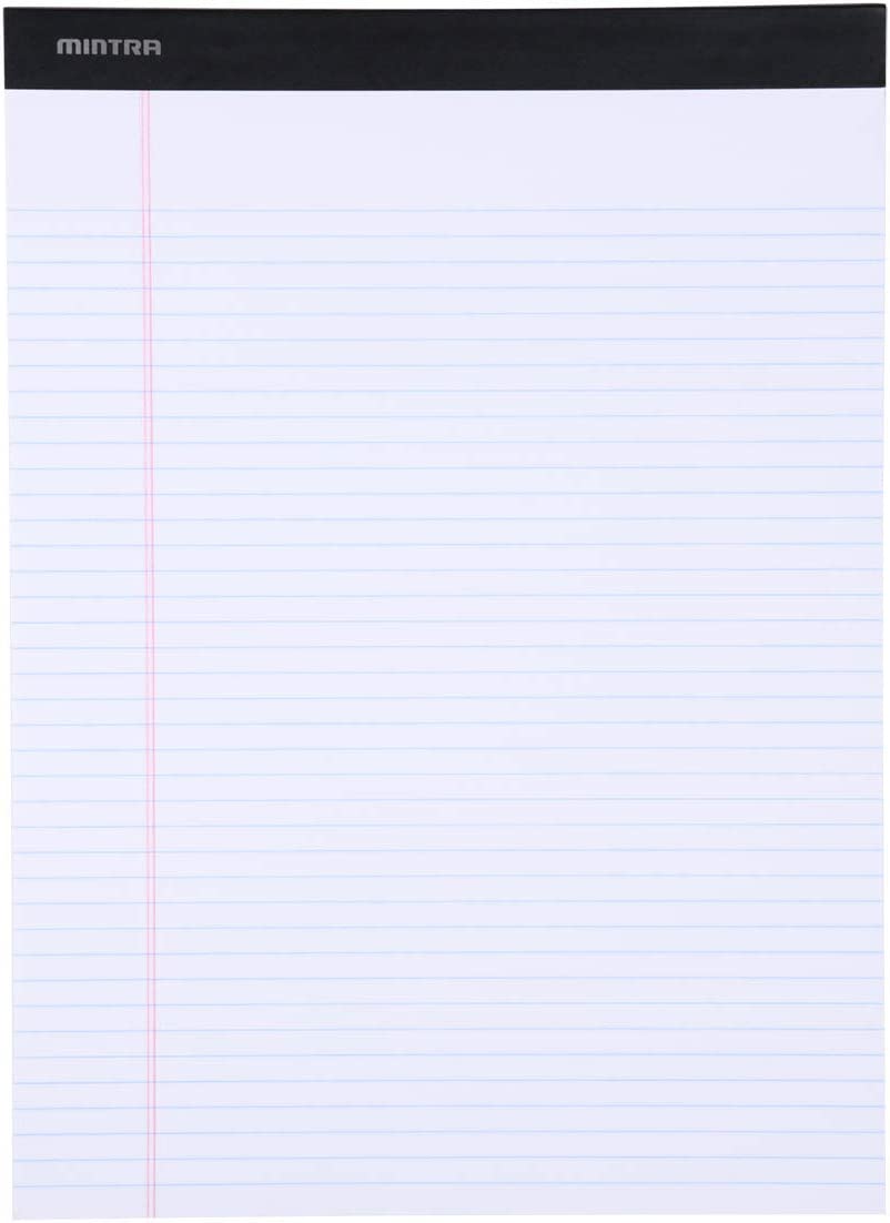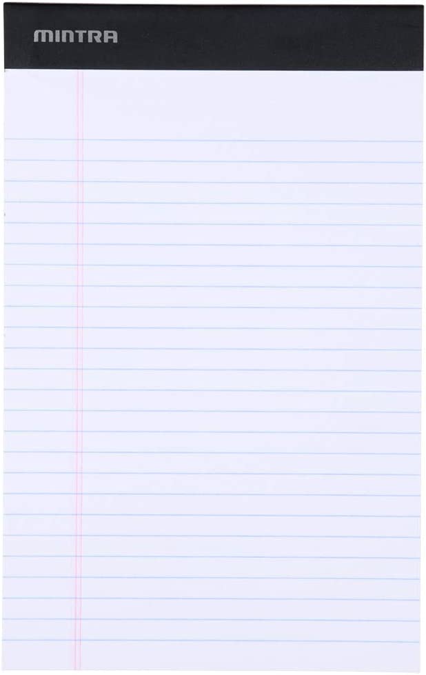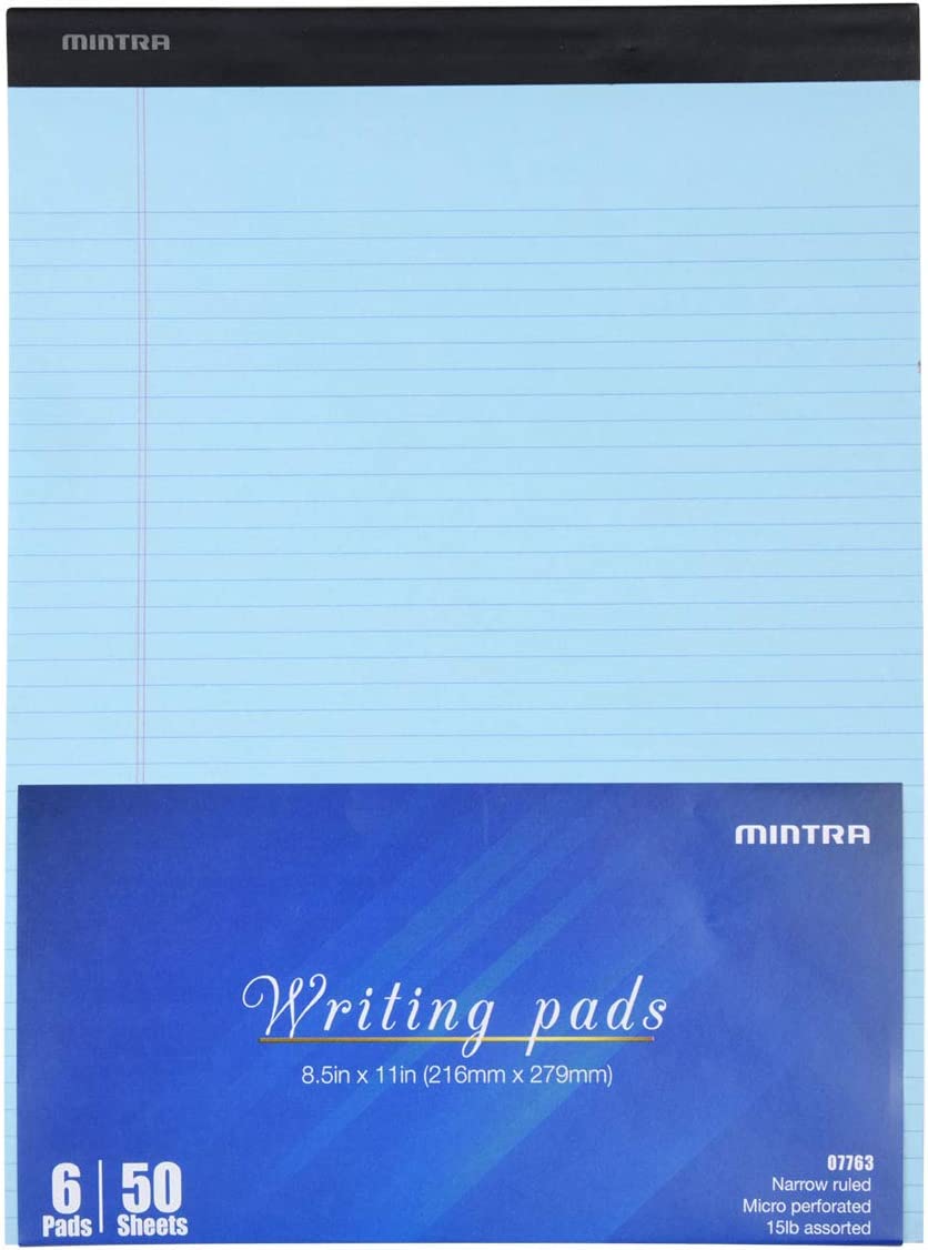 Mintra Office Legal Pads - ((BASIC WHITE 6pk, 8.5in x 11in, NARROW RULED)) - 50 Sheets per Notepad, Micro perforated Writing Pad, Notebook Paper for School, College, Office, Business