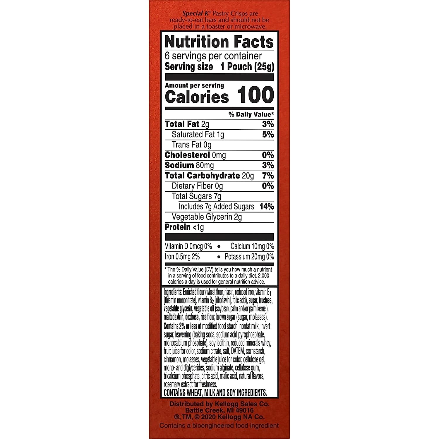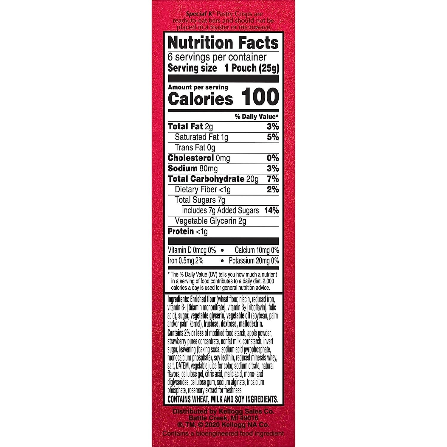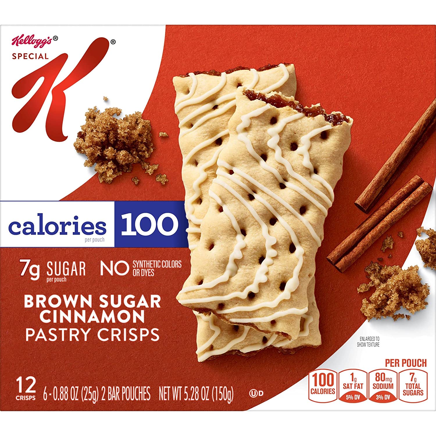 Enjoy the freedom to snack deliciously with guilt-free Special K Strawberry Pastry Crisps. Includes one, 5.28-ounce box containing 12, 100-calorie pouches ready to satisfy sweet cravings on the go. A balance of crumbly crust, icing drizzle and gooey center bursting with strawberry flavor provides a simple, feel-good snack experience in every bite. With 7g sugar (2g sugar alcohol) per 2-bar serving, you can say yes to treating yourself and no to compromising on flavor; keep Pastry Crisps in your pantry, desk or car for a quick afternoon pick-me-up or rewarding anytime treat. Stash a portable pouch in any purse, work tote, backpack, or fitness bag to delight your sweet tooth throughout the day. Go big on taste with 100 calories by adding the joy of Kellogg's Special K Strawberry Pastry Crisps to your regular snack routine.