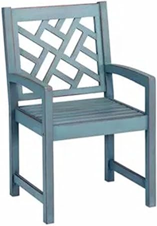 22 Inch Seat Distressed Hardwood Portland Patio Arm Chair with Brush Wire Finish and 250 Pound Maximum Capacity, Blue