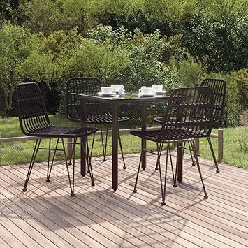 5 Piece Patio Dining Set Black Poly Rattan, Elegant Patio Dining Set: Durable, Comfortable, and Stylish for Your Outdoor Living Outdoor Furniture Sets, Patio Furniture