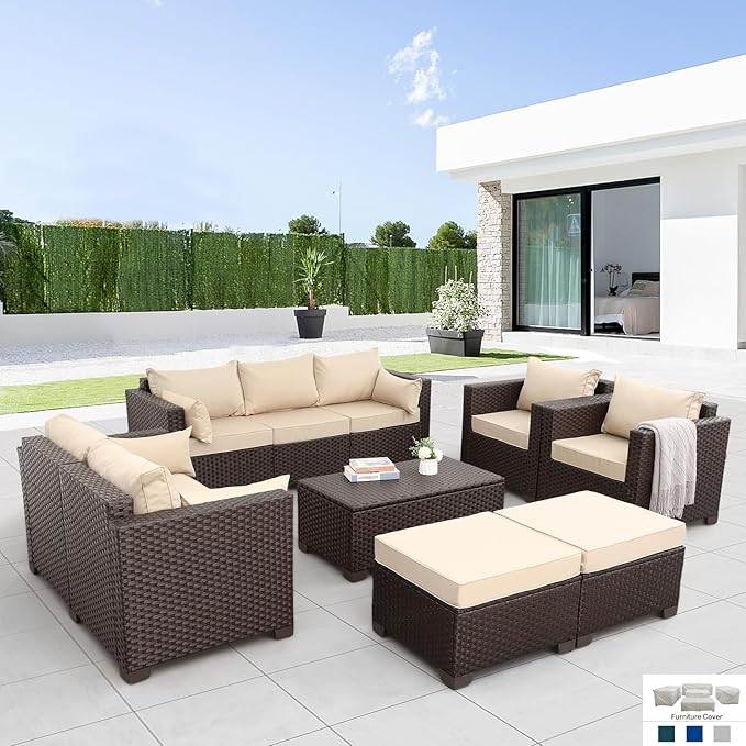 7 PCS Patio Furniture Set Outdoor Patio Furniture with Storage Table Outdoor Couch Patio Chairs Outdoor Conversation Set with Non-Slip Cushions Waterproof Covers, Khaki