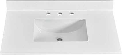 36"x22" Quartz Stone Bathroom Vanity Countertop with Middle Offset Rectangular Ceramic Sink, 8-Inch Faucet Spacing, and Backsplash (Cabinet Not Included)