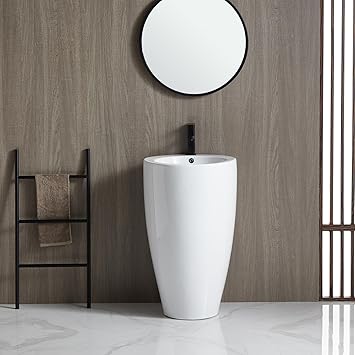 Eridanus Vitreous China One Piece Pedestal Sink, 19" L x 19" W Pedestal Bathroom Sink with Overflow, Round Pedestal Sink in Glossy White