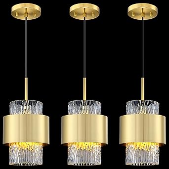 3 Pack 1 Light Hanging Indoor Kitchen Island 6" Drum Clear Textured Glass Shade Pendant Ceiling Light Fixtures, Brushed Bronze Finish Modern Farmhouse Dinning Over Sink
