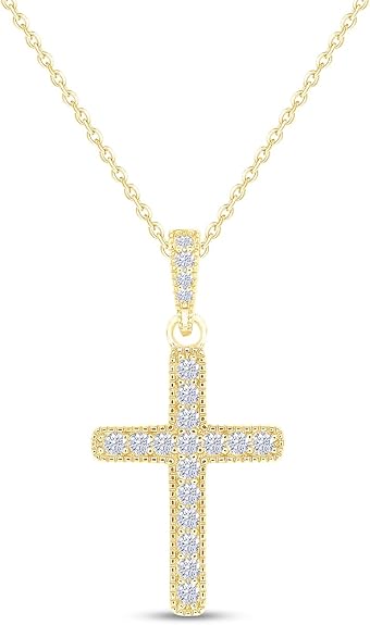 18K Gold Plated Moissanite Cross Necklace | 0.36 Ctw Moissanite Diamond Jesus Christian Religious Crucifix Pendant Necklace for Men Women | 16"+2_ã� Adjustable Chain