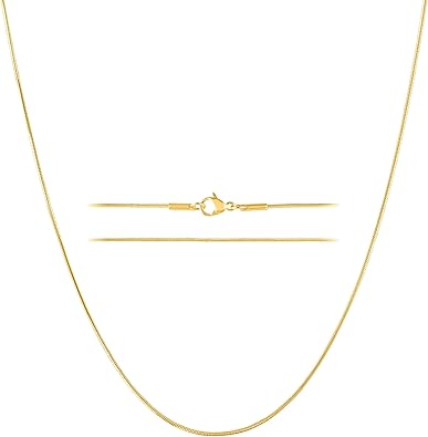 KISPER 24k Gold Snake Chain Necklace _ã_ Thin, Dainty, Gold Plated Stainless Steel Jewelry for Women & Men with Lobster Clasp