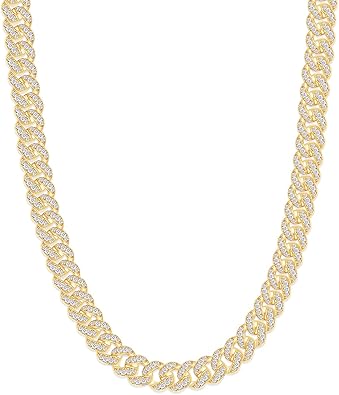 SAVEARTH DIAMONDS 4.82 Ct to 8.96 Ct Lab Created Moissanite 6MM Width Cuban Link Chain Necklace For Men In 14k Gold Plated 925 Sterling Silver, 16" to 30" Length, Gift For Him