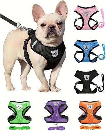 Dog Harness - All Weather Mesh, Reflective, 4 Ft Traction Rope¥_ëNo Pull Harness for Small, Medium Dogs, Cats - Secure with Hook & Loop Fastener, Buckle, Double D-Rings, L, Black