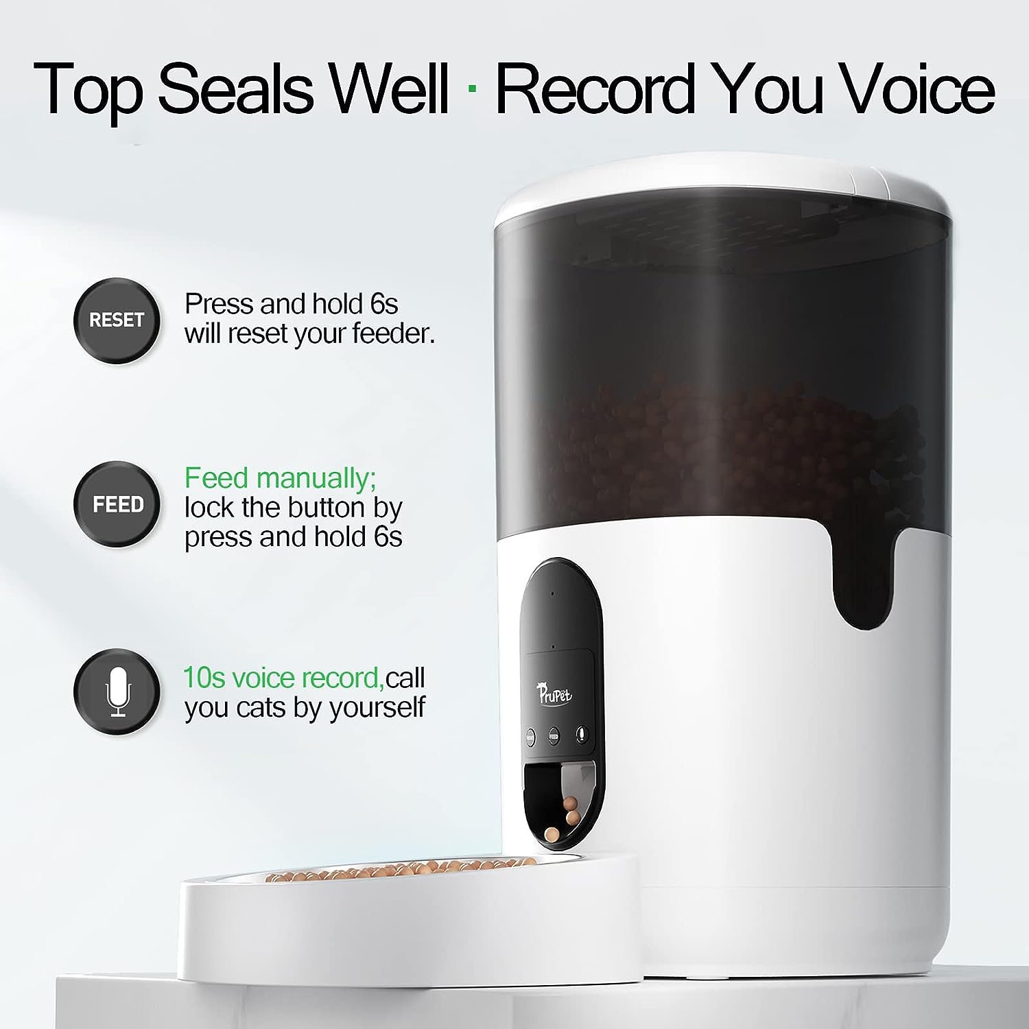 Prupet WiFi Automatic Cat Feeders, 4L Timed Cat Feeder, Cat Food Dispenser with Stainless Steel Bowl, APP Control Pet Feeder, Programmable Portion Control Meals, Granary for Small/Medium Pets