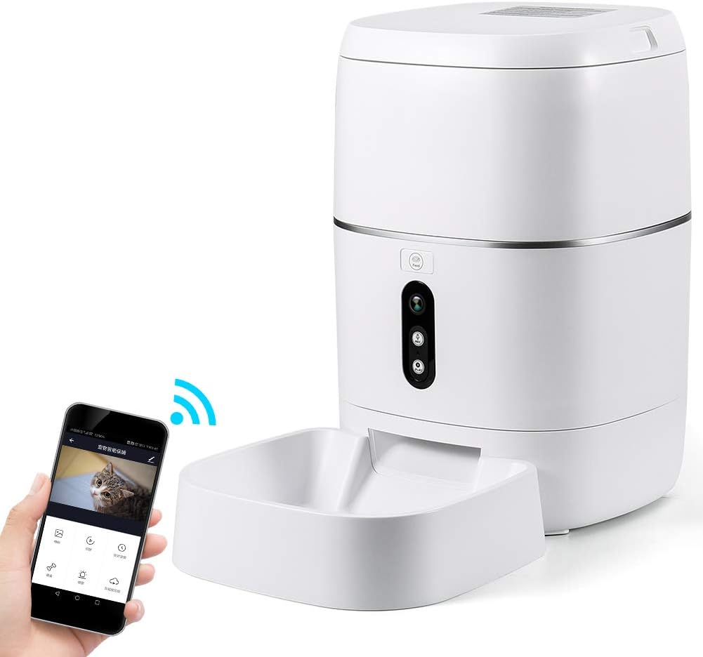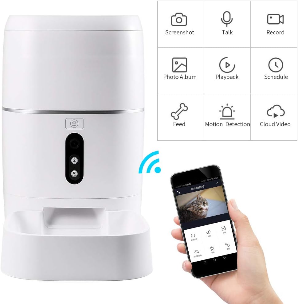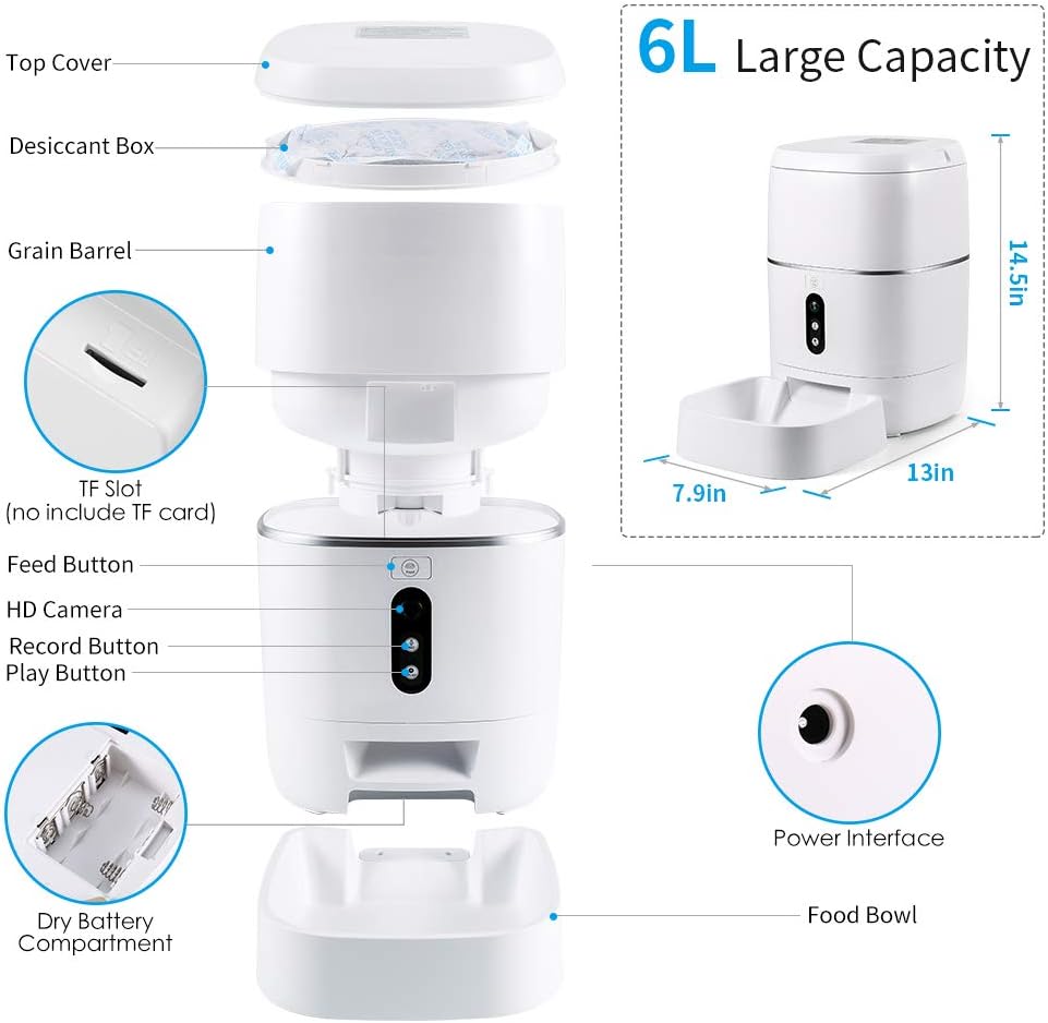 CrazyFire 6L Automatic Cat Feeder,Automatic Dog Feeder with APP Control,1080P HD Camera,Motion Sensor Alarm,Live Video and Audio Communication,Programmable Automatic Pet Feeder for Cat,Dog