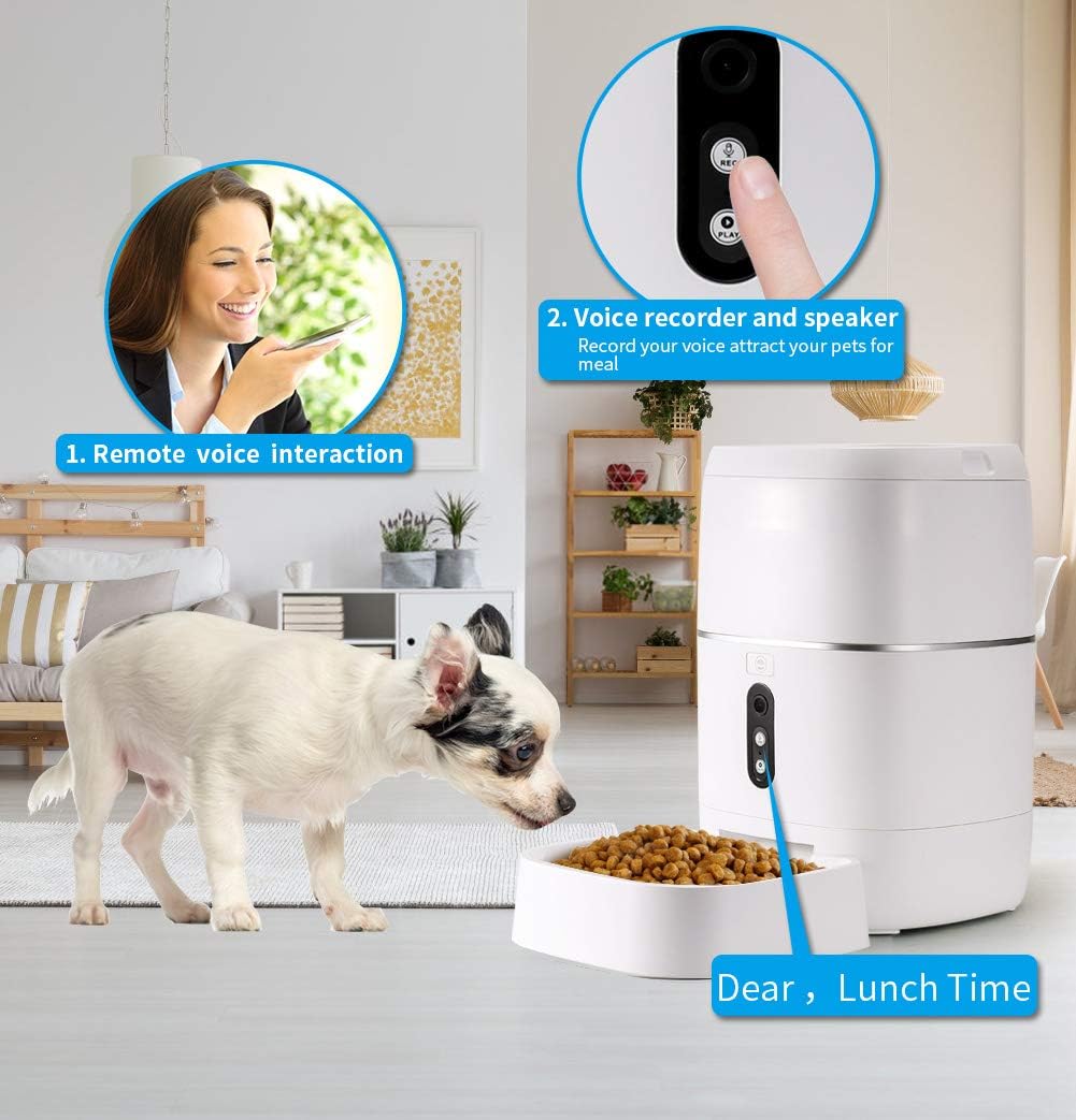 • Remote Voice Interaction & Built-in Voice Recorder and Speaker:The feeder can record your voice up to 10 seconds,and it will automaticly broadcast the voice at meal time.The remote Voice Interaction function enables to view and video for your pet when going out.The HD camera helps you record a video or take a screenshot for you pet,and the video will be stored on your smartphone