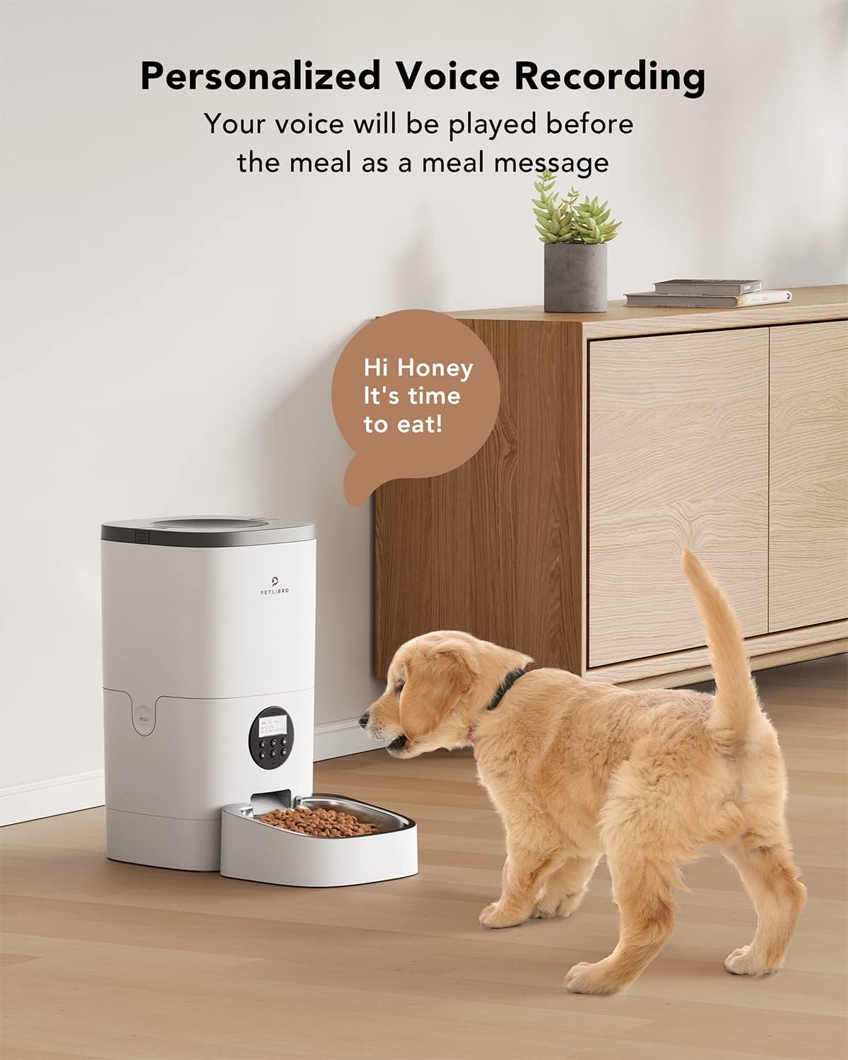 • Custom Recording-Stay connected with your pet by recording your 10s voice into the dog feeders for large dogs, thus plays while the food is dispensed, enhancing the bond with your pet by keeping him fed regularly and feel safe & well cared.