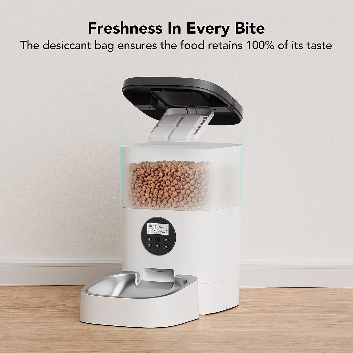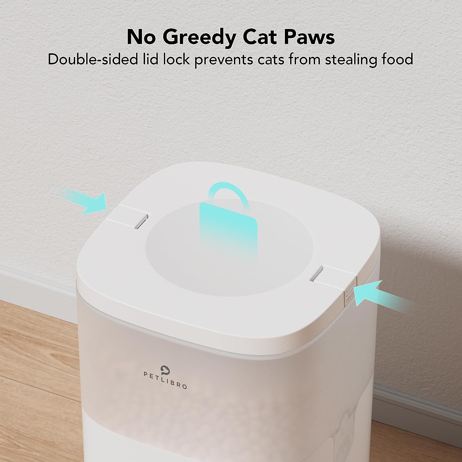 • Freshness in, Dogs out-PETLIBRO Dog Food Dispenser adopts lock lid on the top, firmly locking the top of the granary, preventing dogs from stealing food and completely isolating the air, preventing food damp and moldy. Plus, we offer extra desiccant bag for freshness. Please search "B08NVBYQHV" for more desiccant bags.