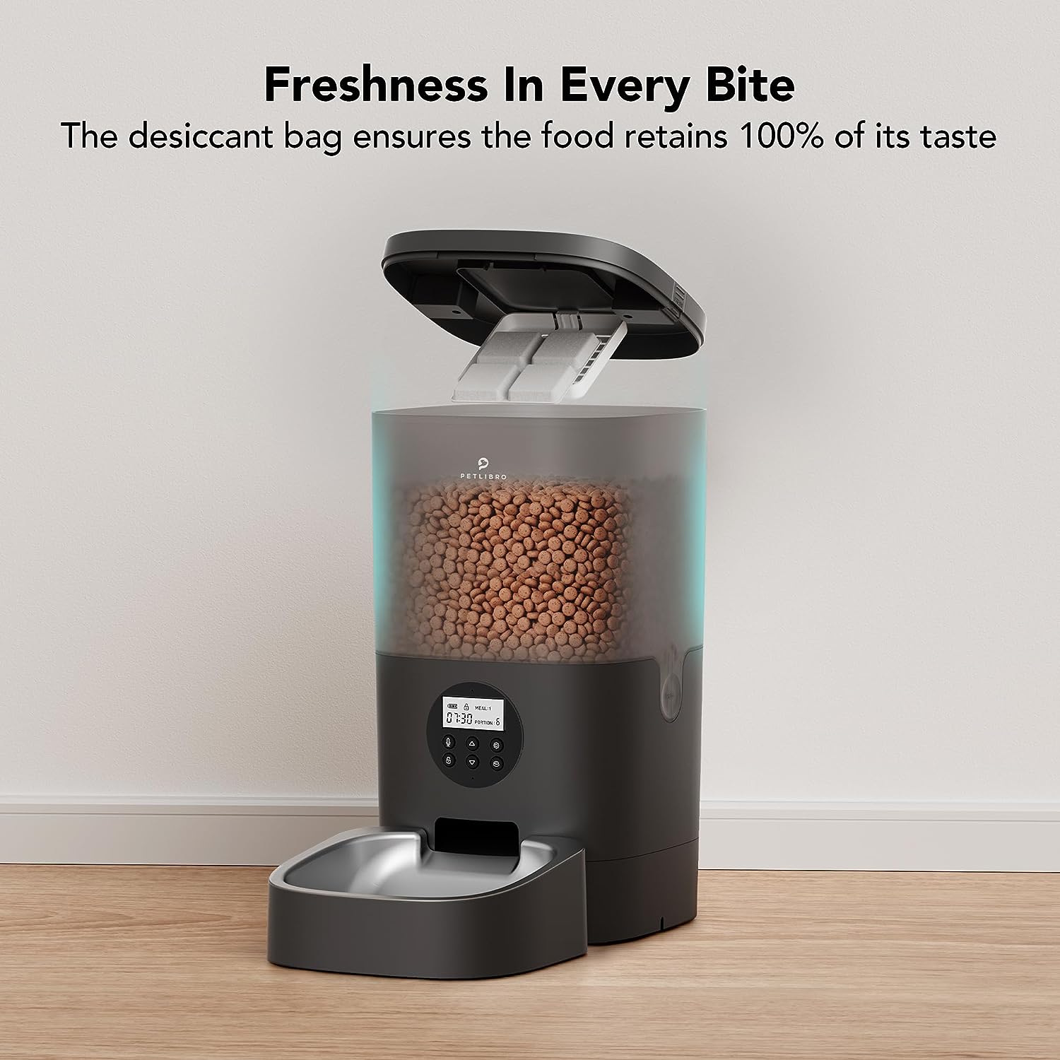 PETLIBRO Automatic Dog Feeder, 6L Dog Food Dispenser with Customize Schedule, Dog Feeders for Large Dogs with Timer Interactive Voice Recorder, Auto Dog Feeder 1-4 Meals Dry Food, Black Transparent