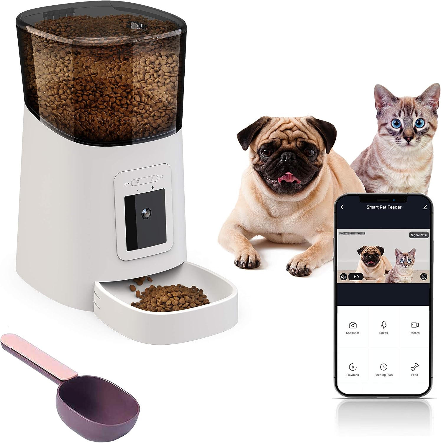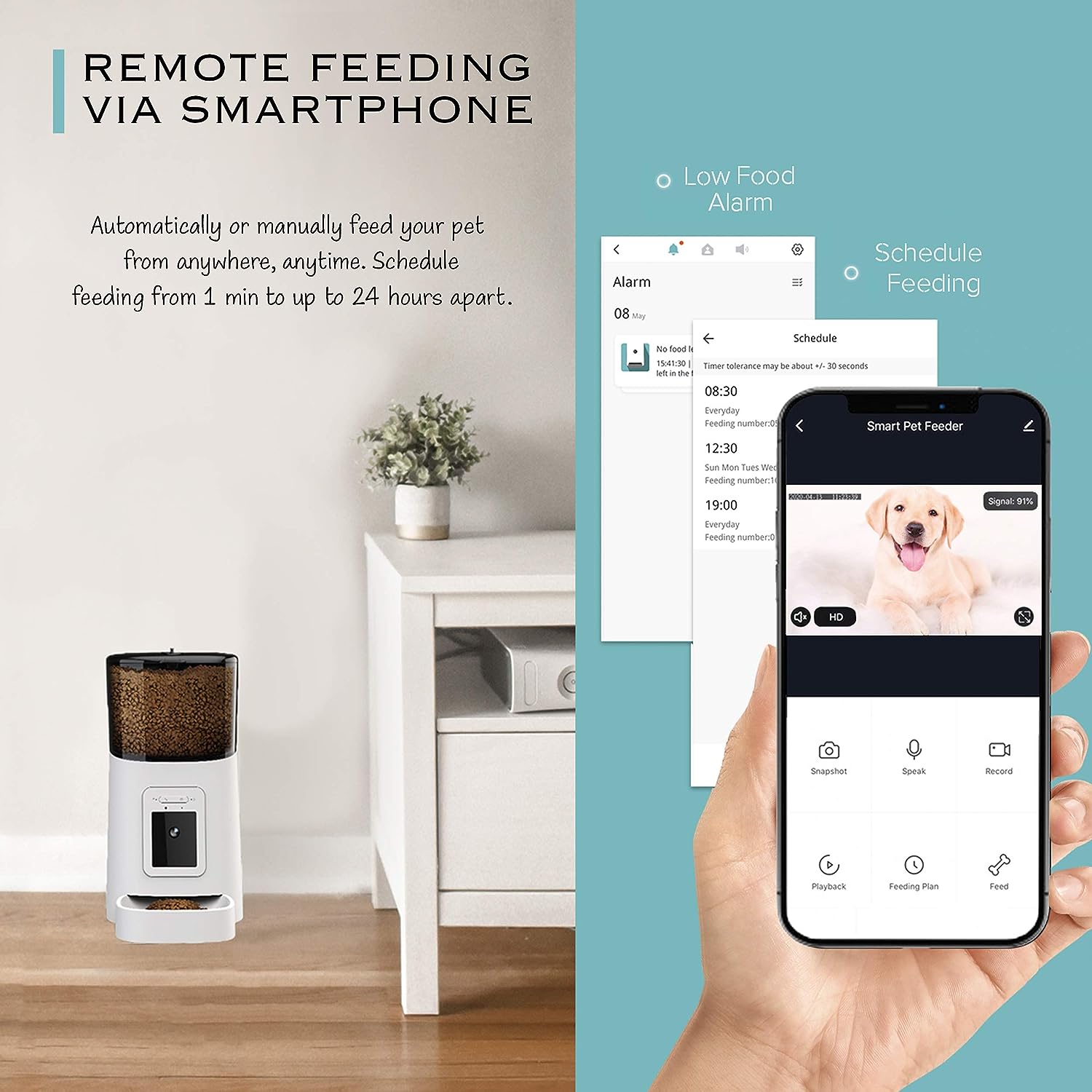 SEKOYA Automatic WiFi 6L Smart Pet Feeder / 1080p Camera for Cats & Dogs/Auto + Manual Food Dispenser/iOS Android Compatible / 2.4GHz Wi-Fi Enabled/Scheduled Feeding/Video Recording