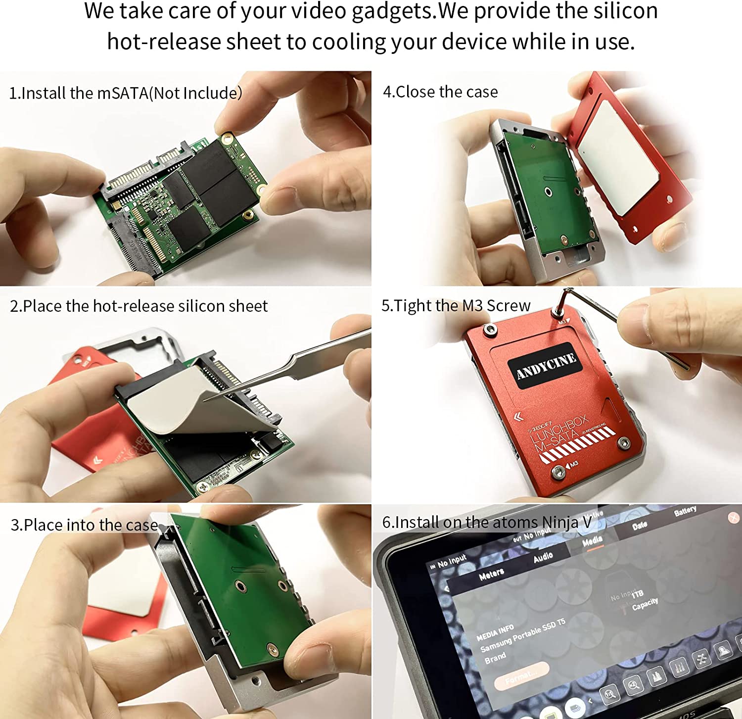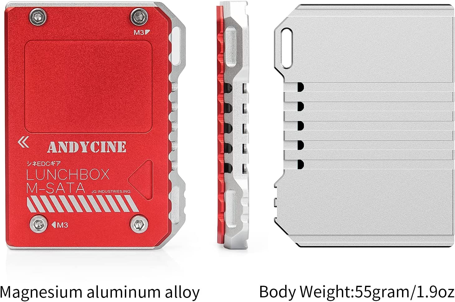ANDYCINE Magnalium Case for mSATA SSD Compatible for Atomos Ninja V ,V+, Ninja Flame, Ninja Inferno, and Shogun Inferno with mSATA to SATA Adapter